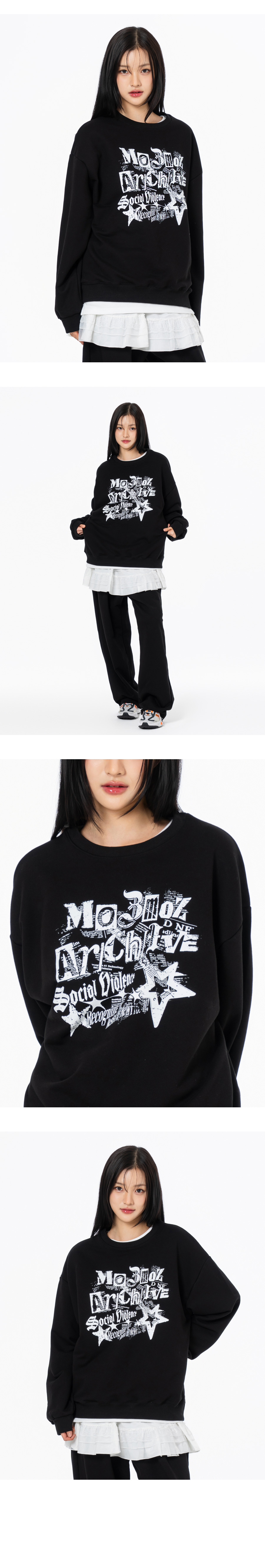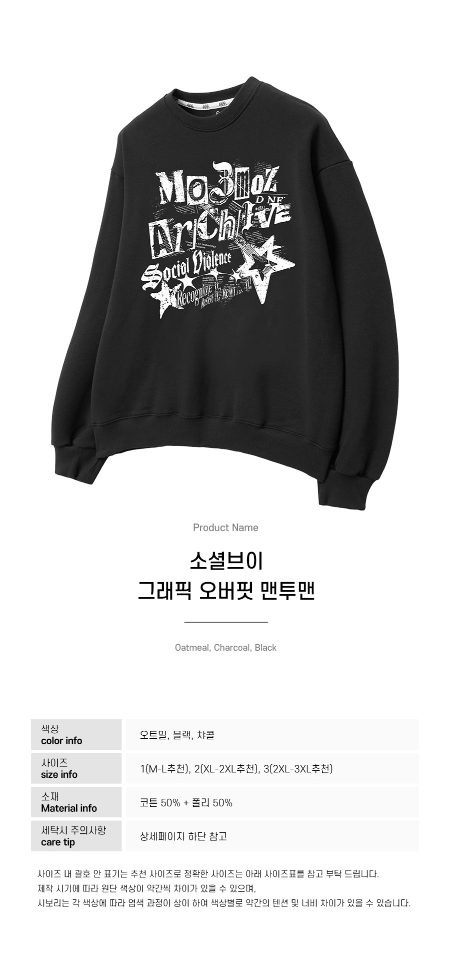 소셜브이 그래픽 오버핏 맨투맨 블랙