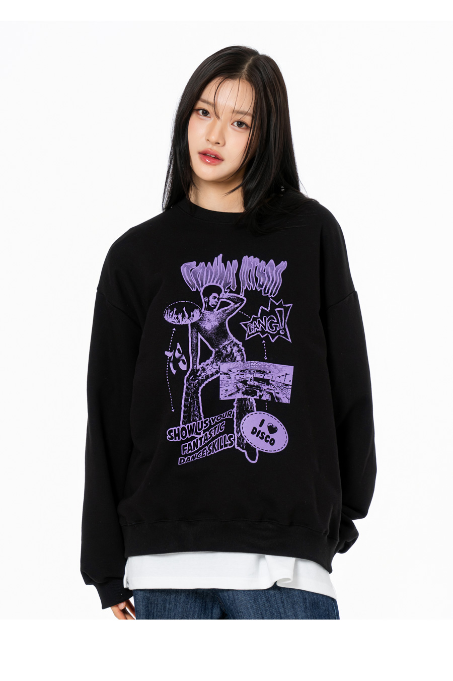 쇼타임 그래픽 오버핏 맨투맨 블랙