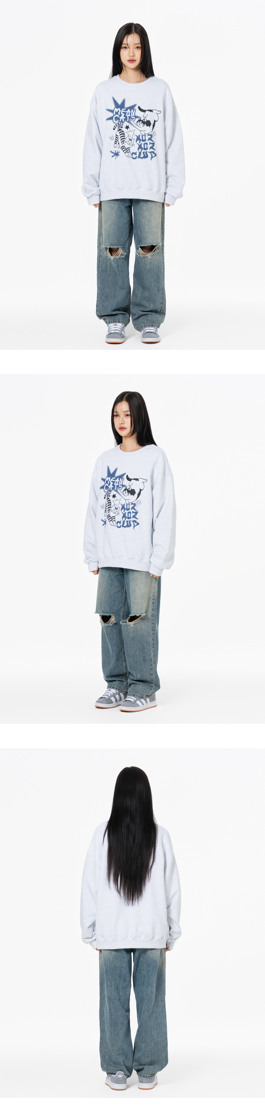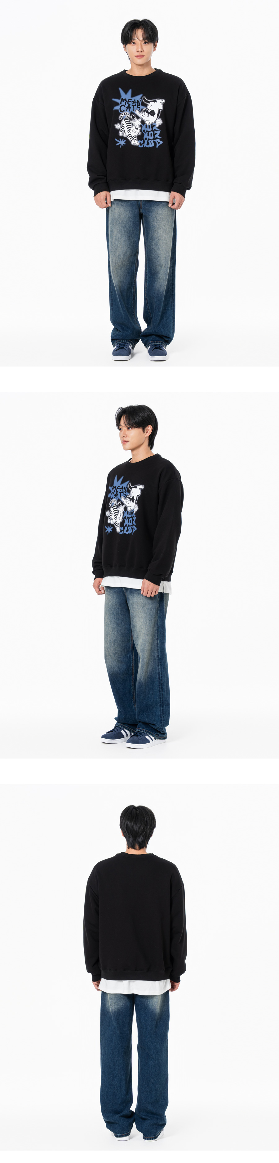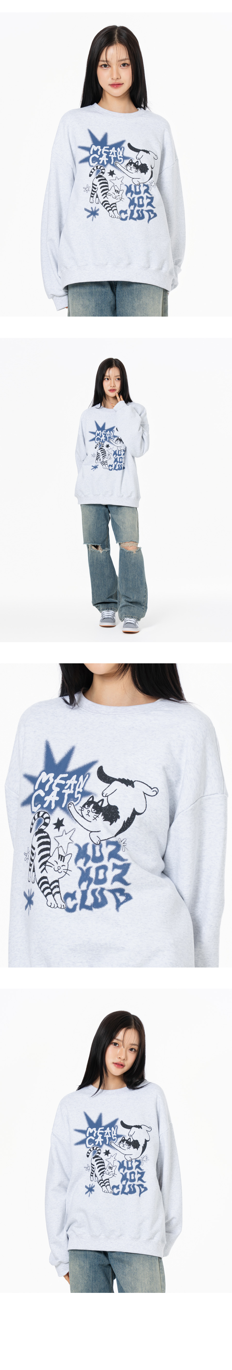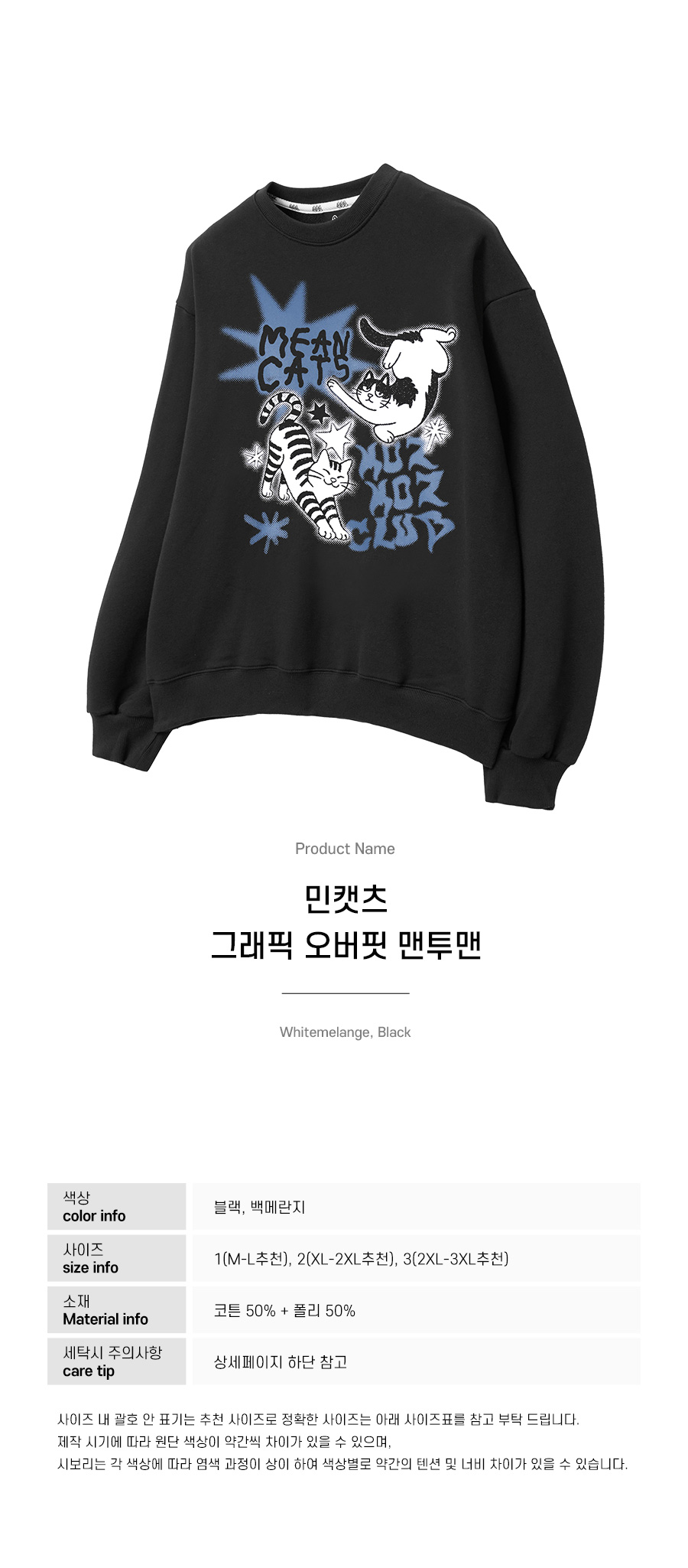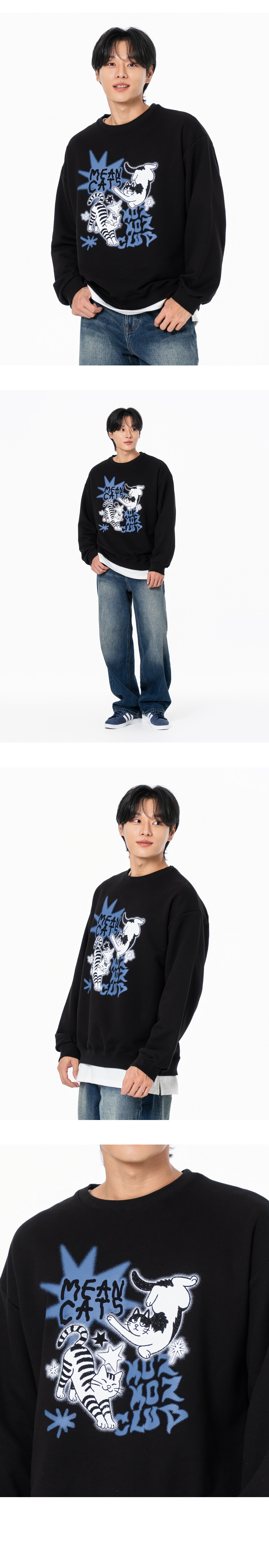 민캣츠 그래픽 오버핏 맨투맨 블랙