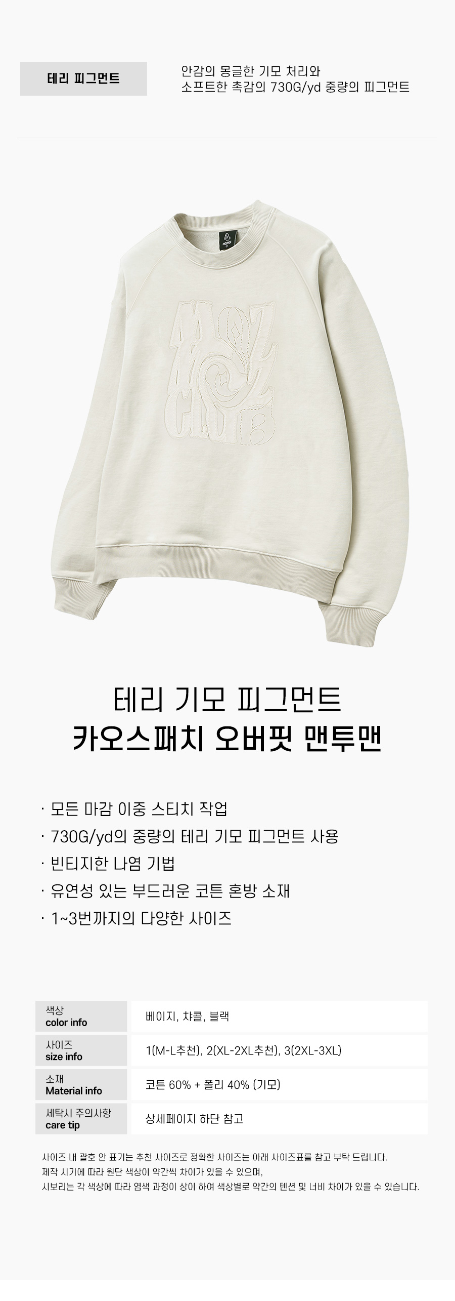 카오스패치 테리 기모 피그먼트 오버핏 맨투맨 베이지
