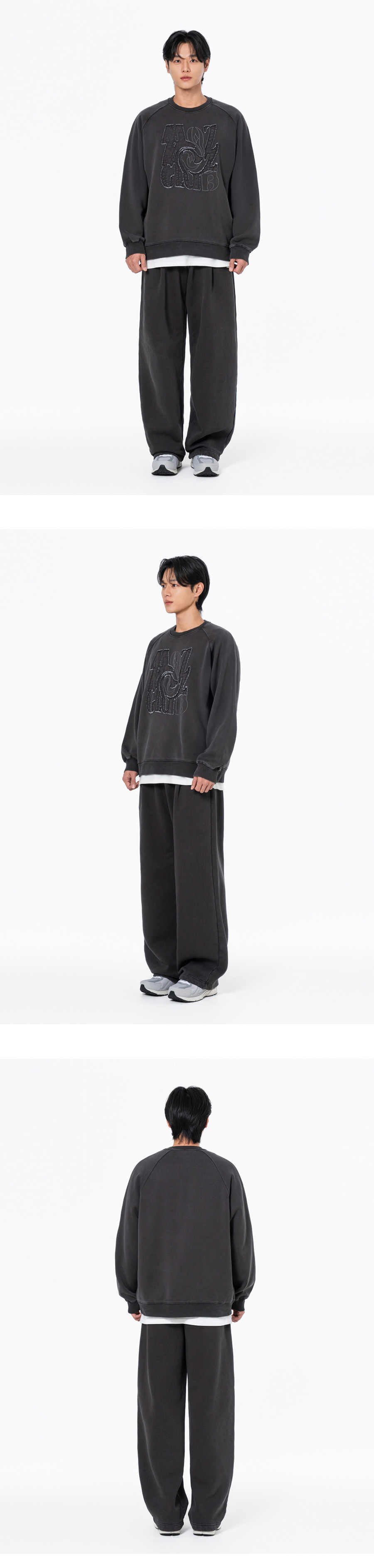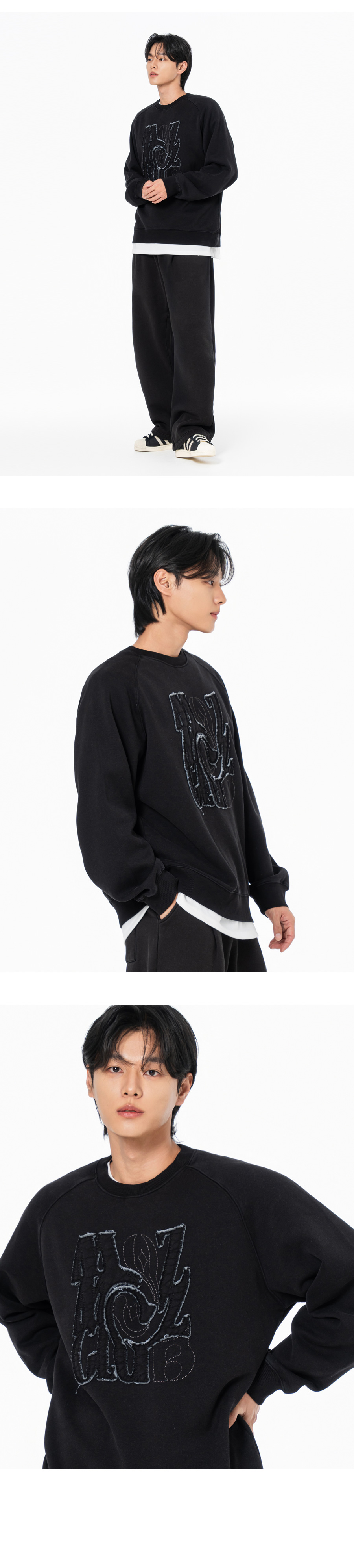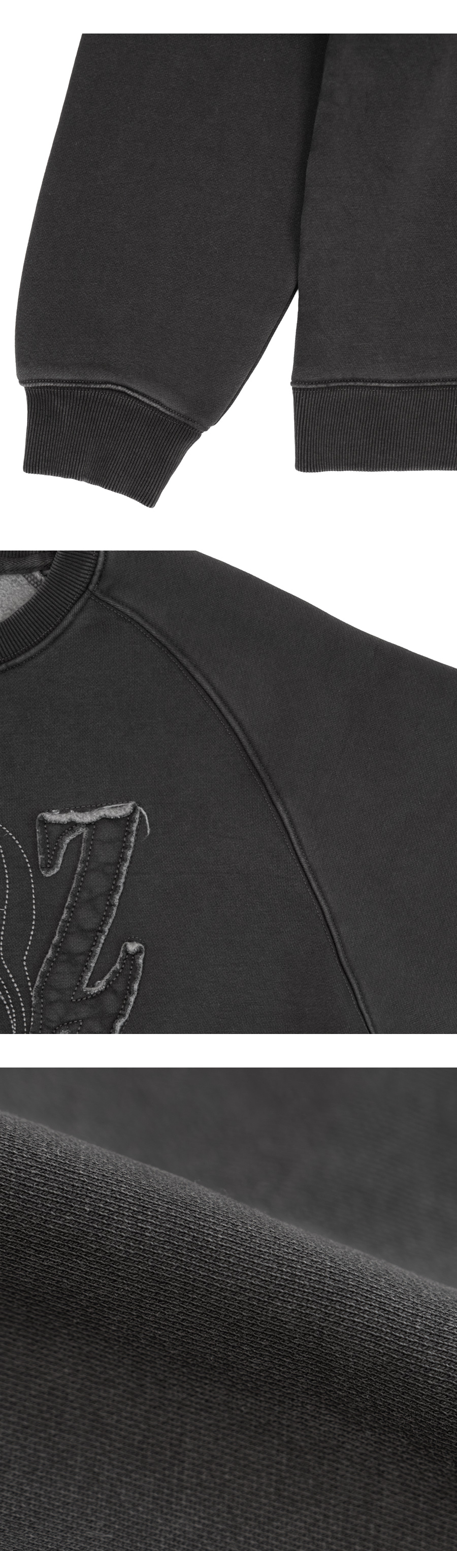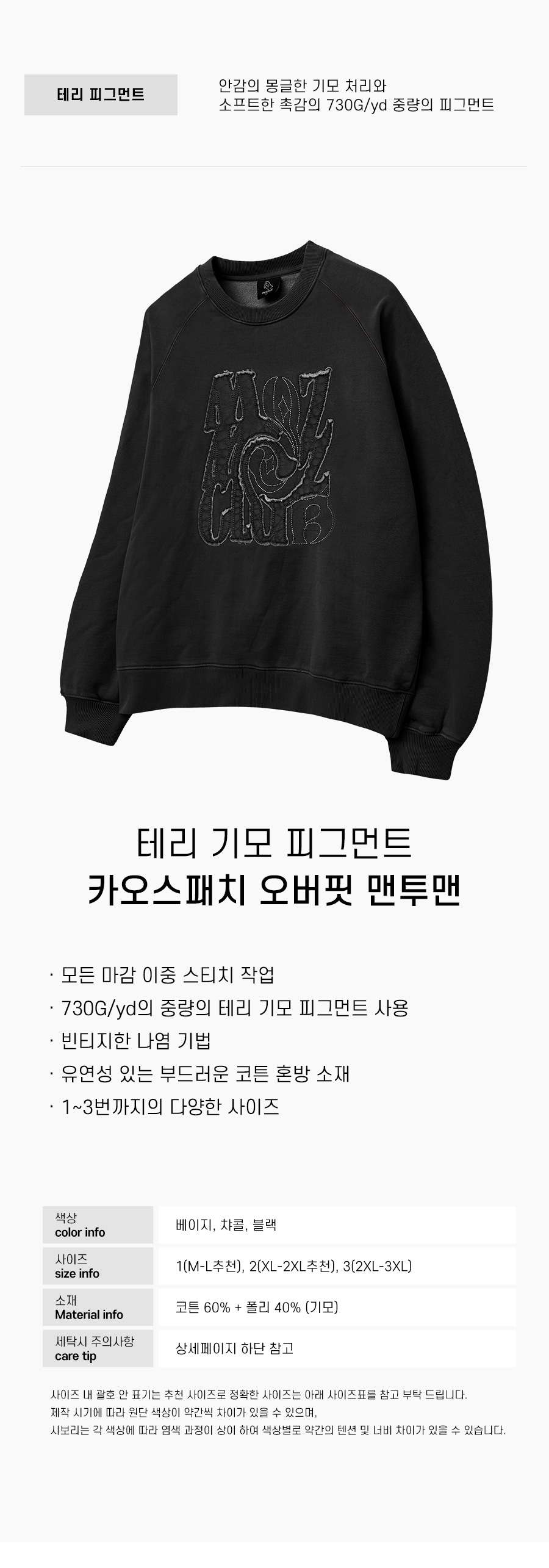 카오스패치 테리 기모 피그먼트 오버핏 맨투맨 블랙