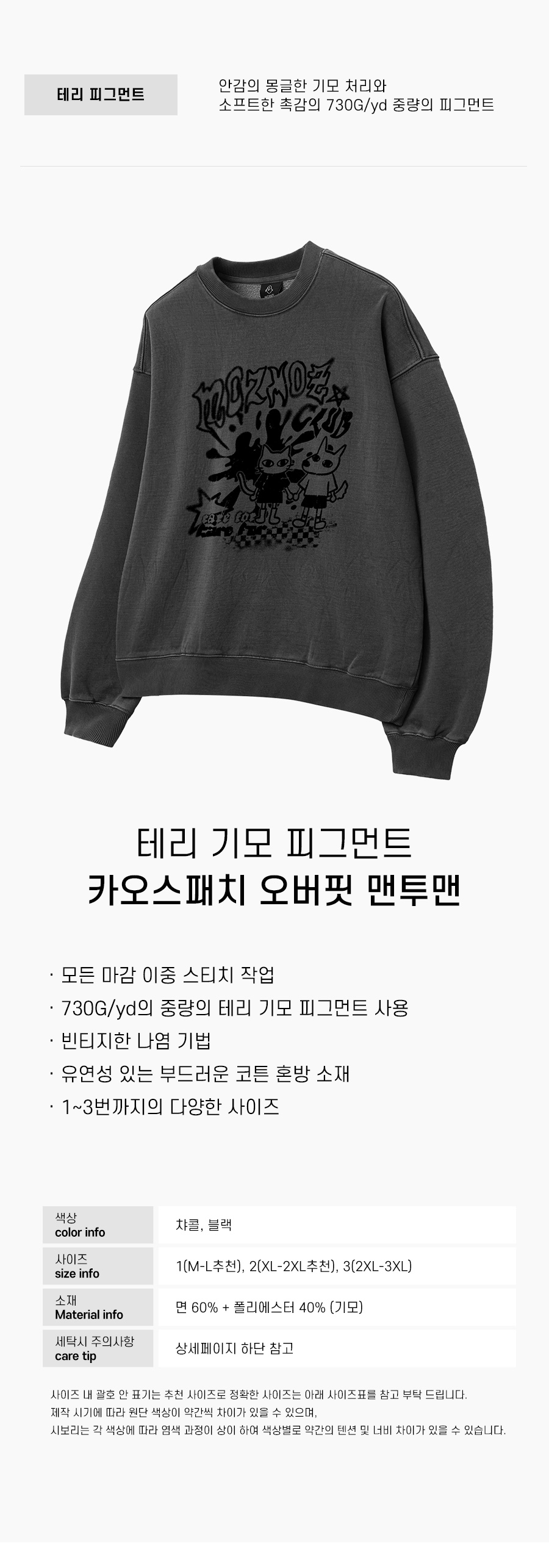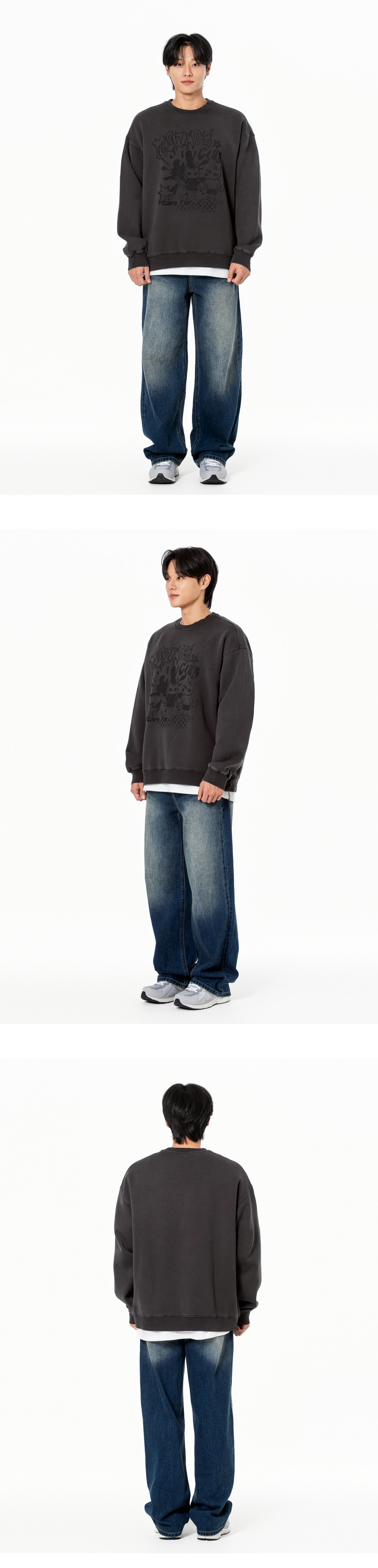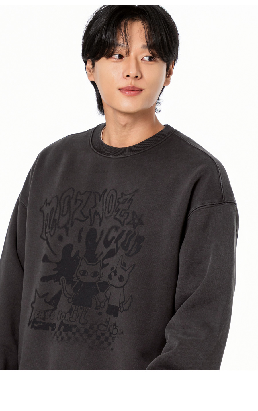 프렌드쉽 테리 기모 피그먼트 오버핏 맨투맨 챠콜