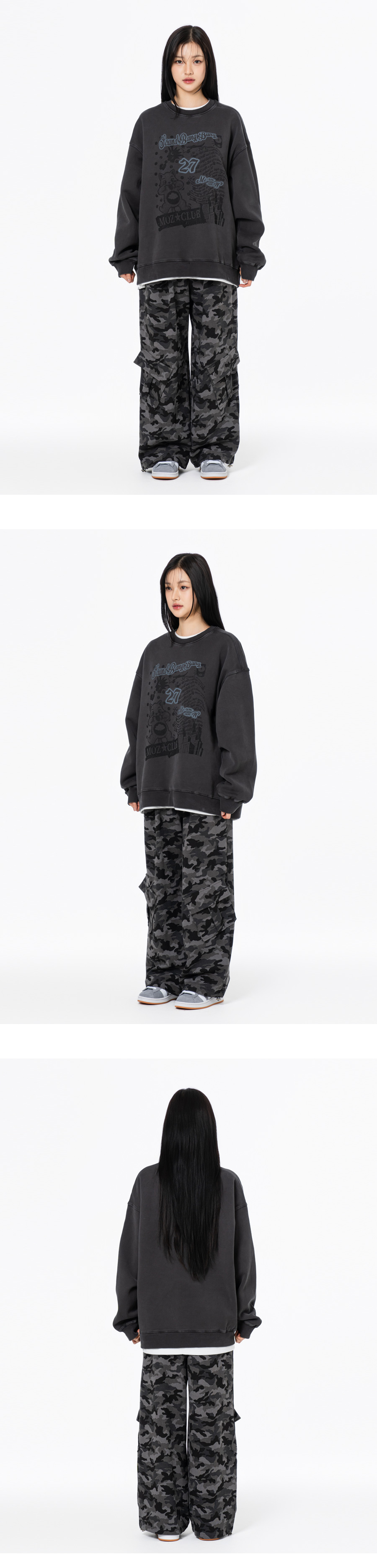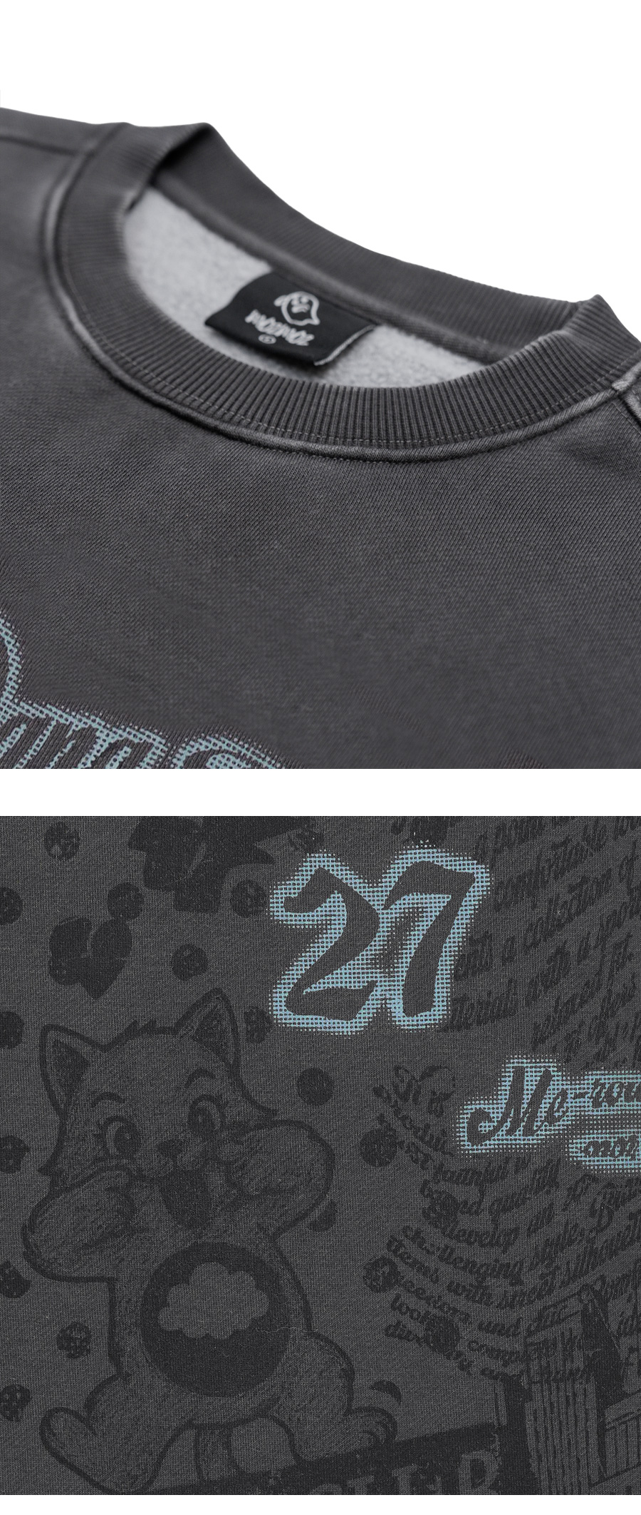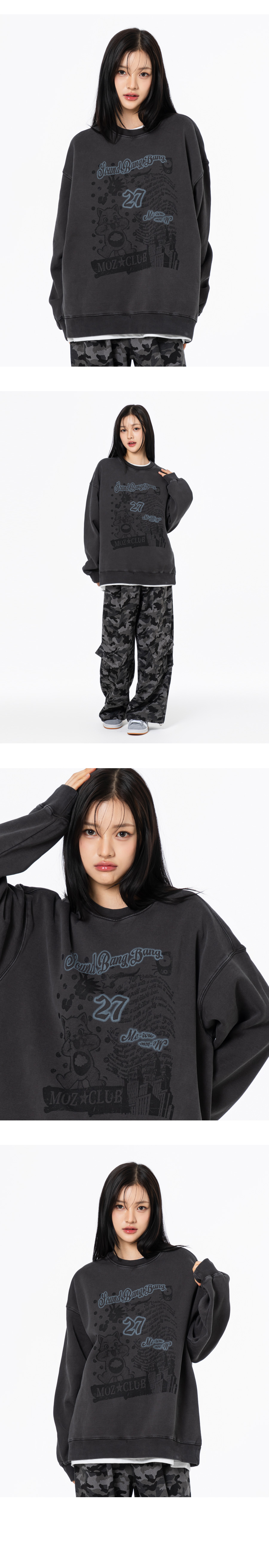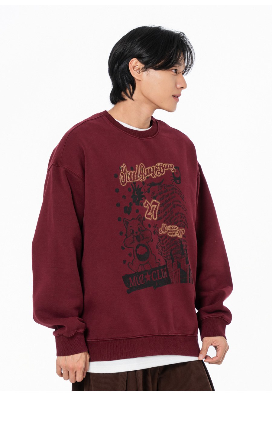 미야오 테리 기모 피그먼트 오버핏 맨투맨 버건디