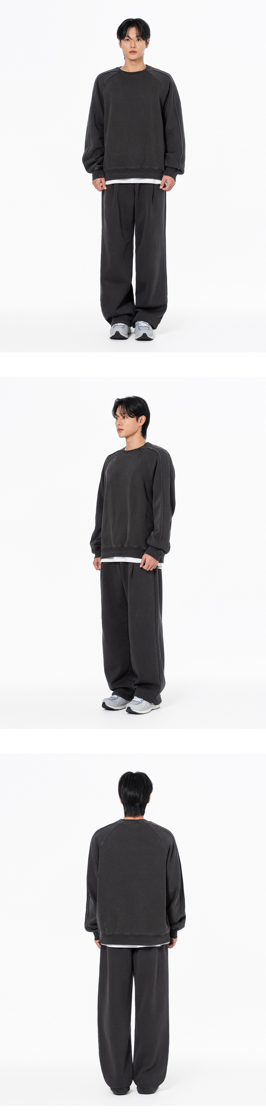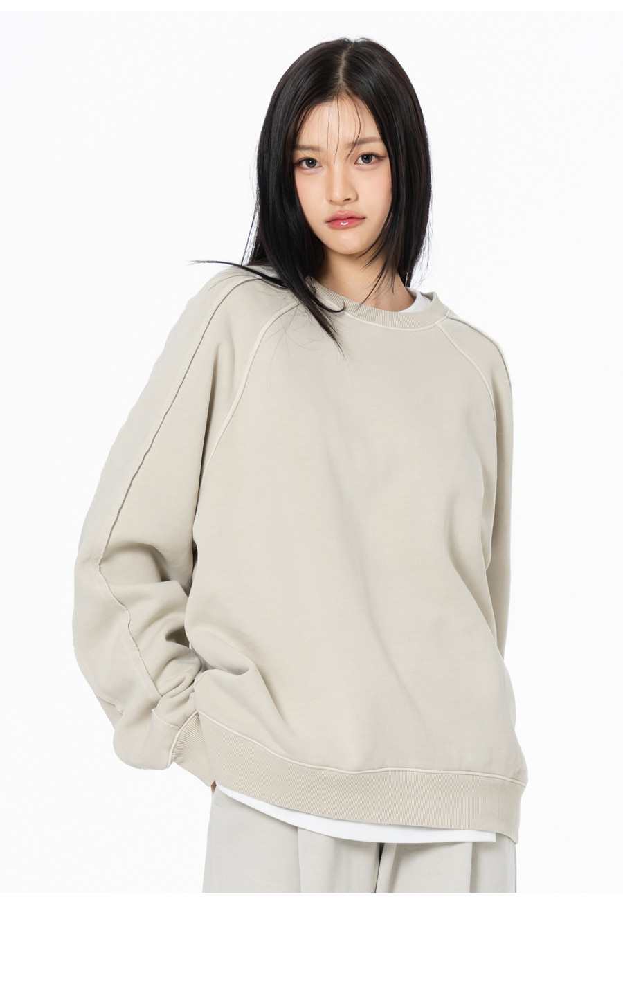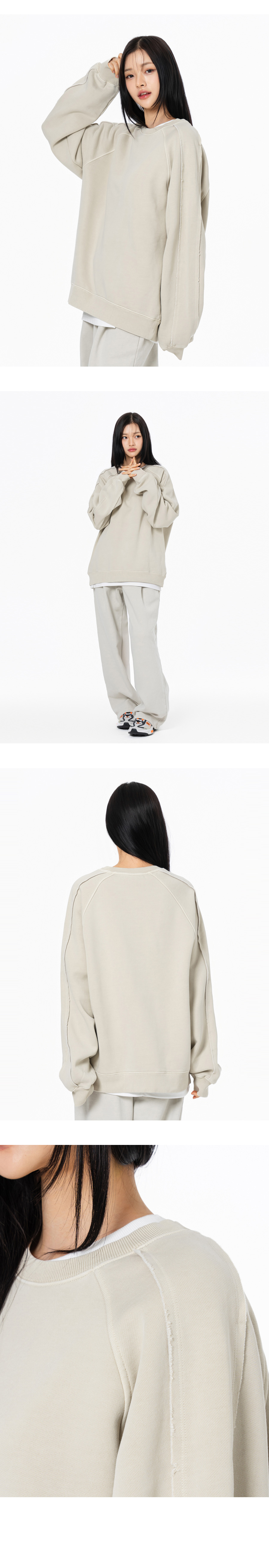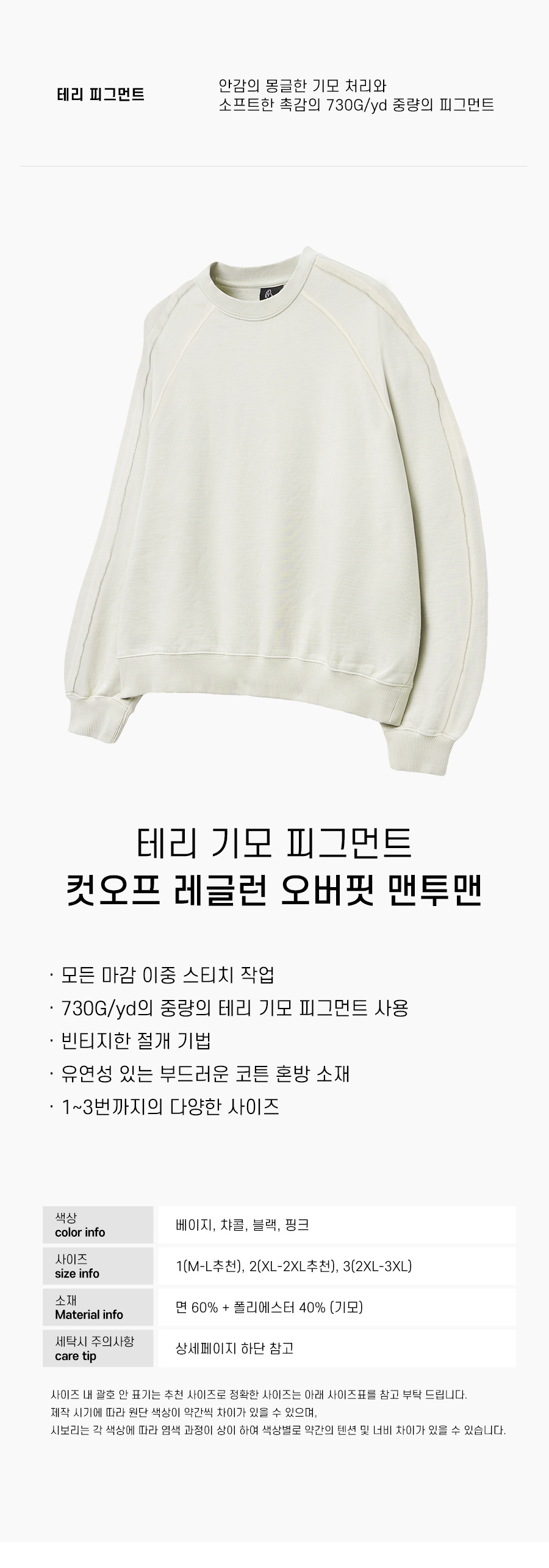 컷오프 레글런 테리 기모 피그먼트 오버핏 맨투맨 베이지