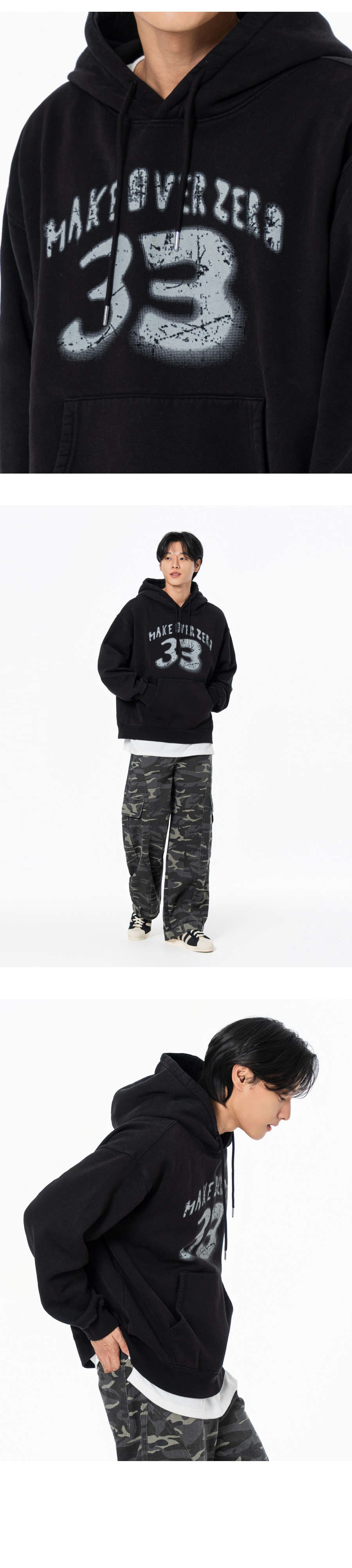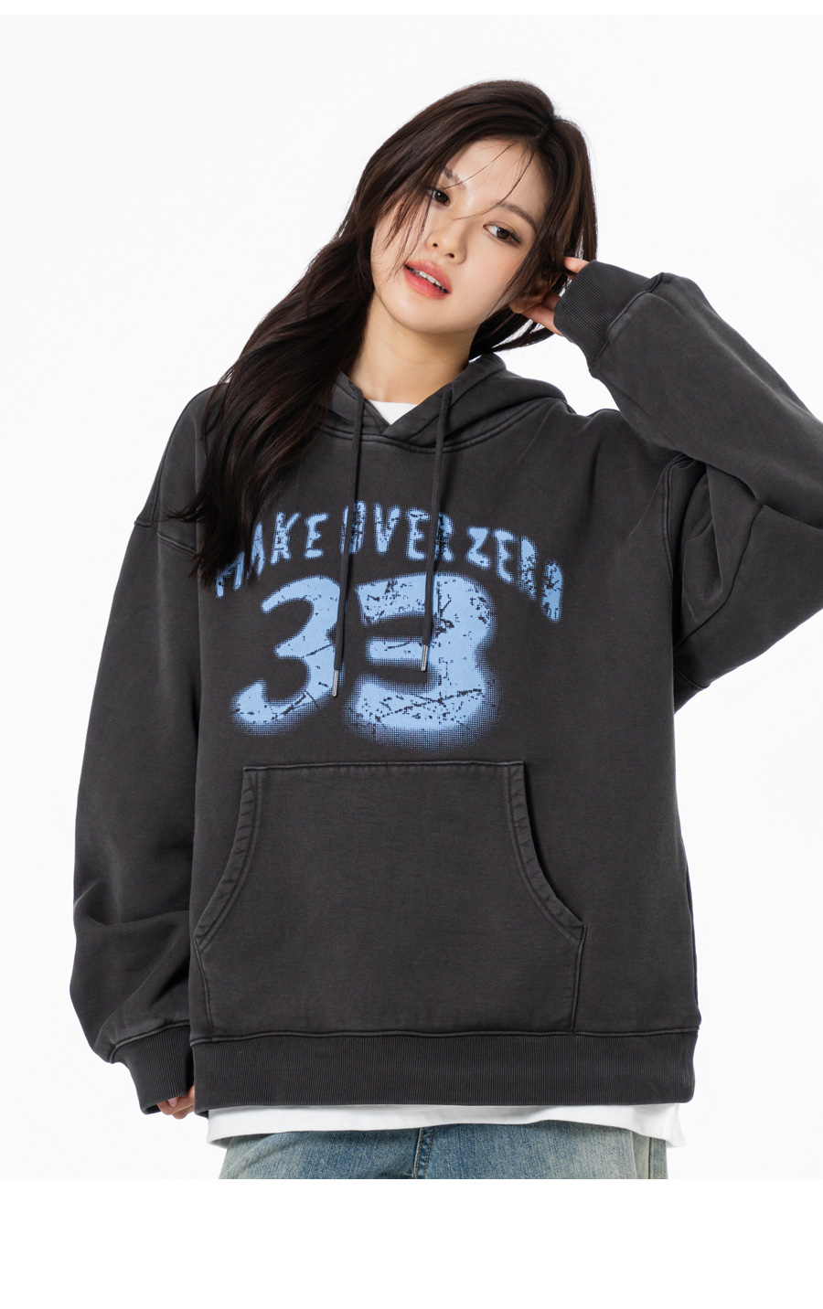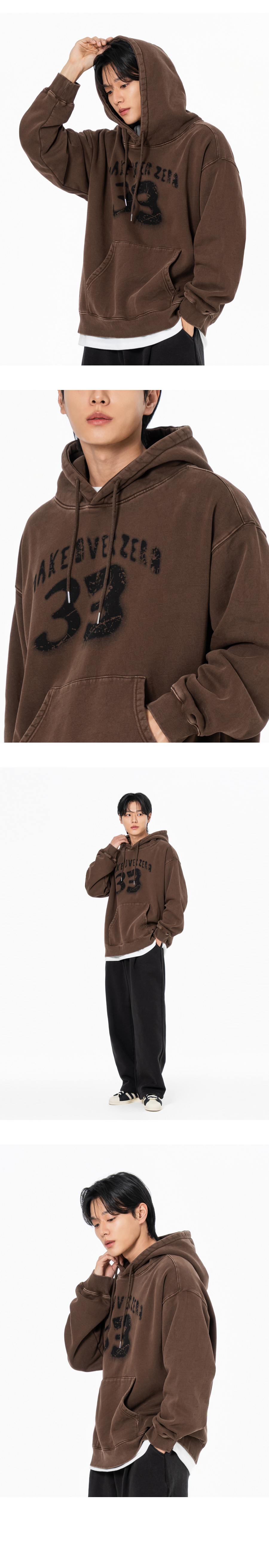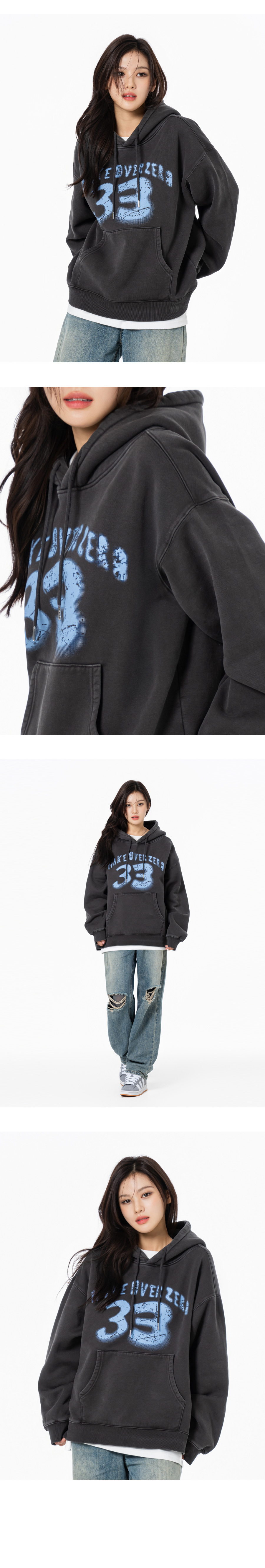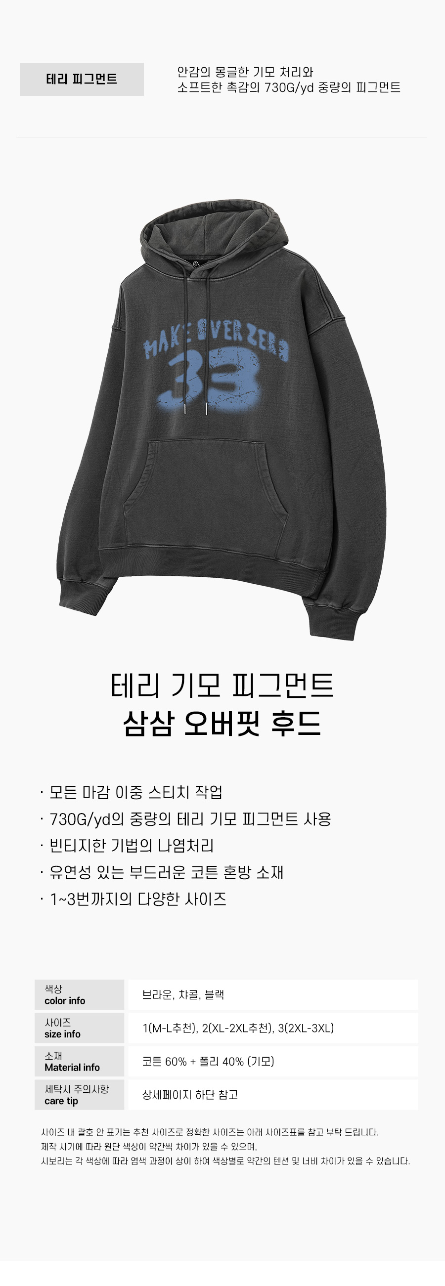 삼삼 테리 기모 피그먼트 오버핏 후드 챠콜