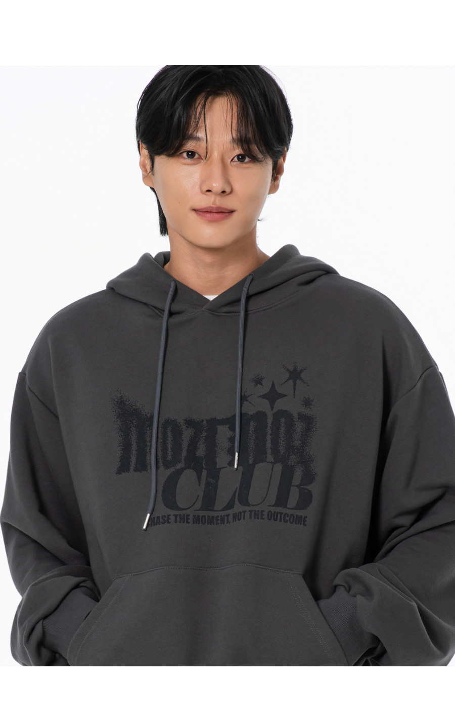 페이딩 그래픽 오버핏 후드 챠콜