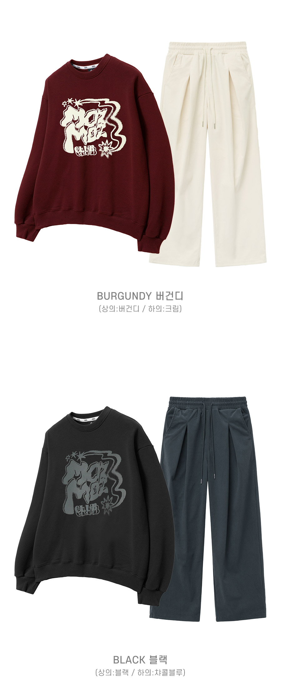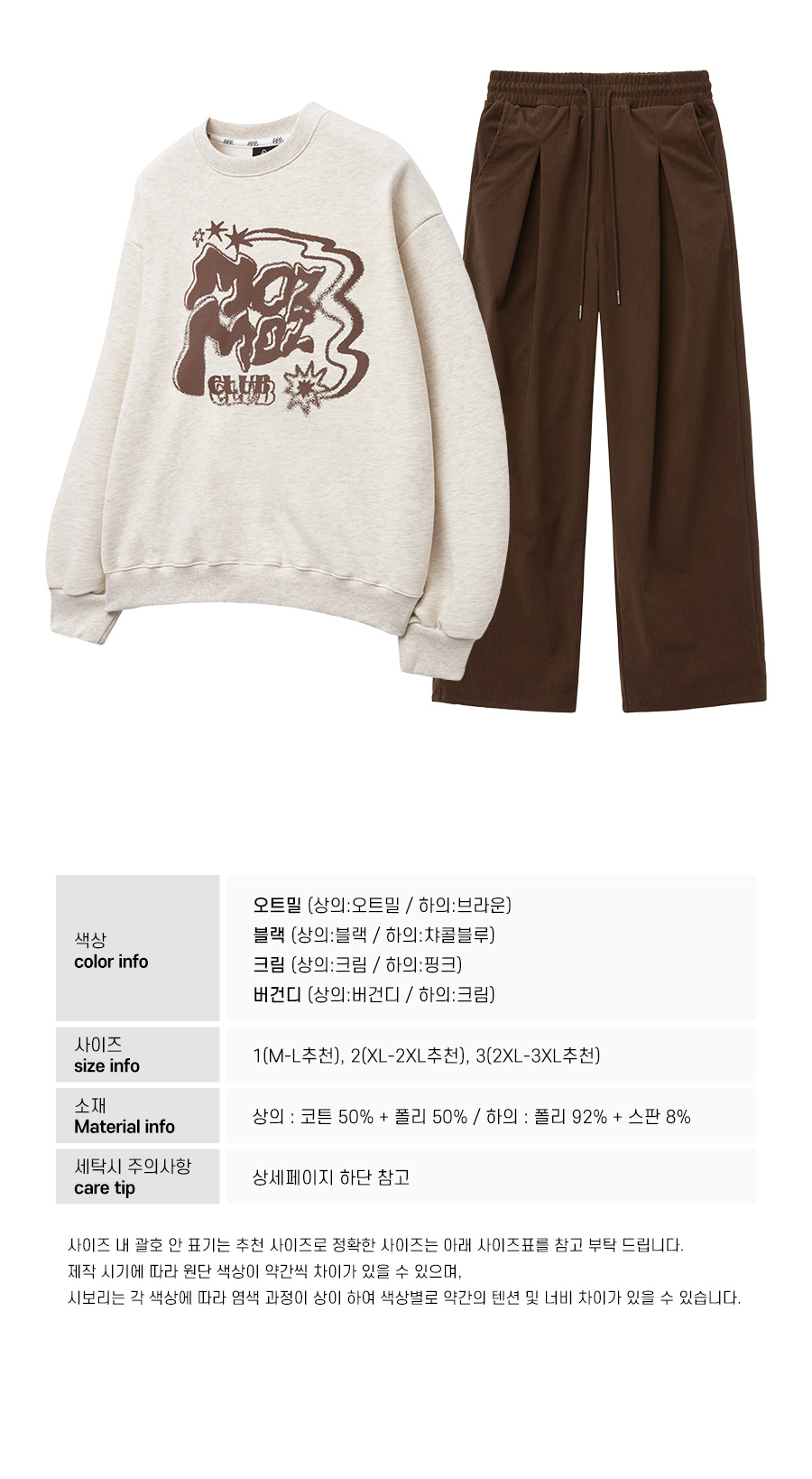 [SET] 트윙클 오버핏 맨투맨 + 코듀로이 원턱 와이드 팬츠 오트밀