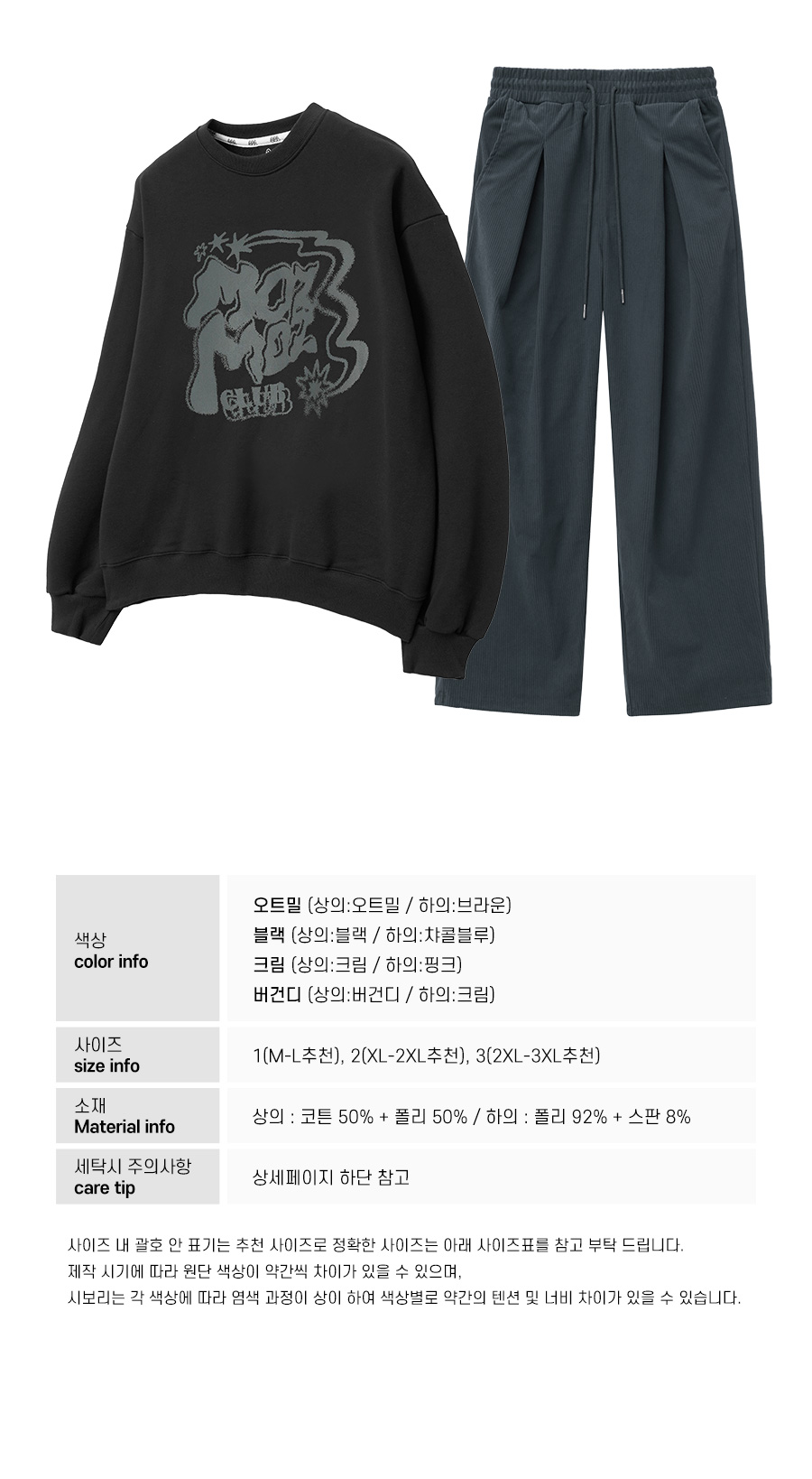[SET] 트윙클 오버핏 맨투맨 + 코듀로이 원턱 와이드 팬츠 블랙