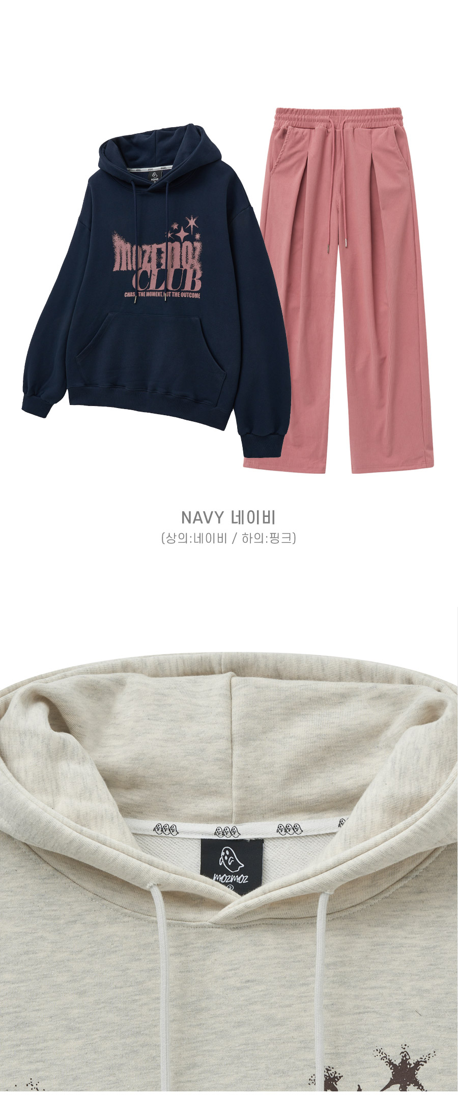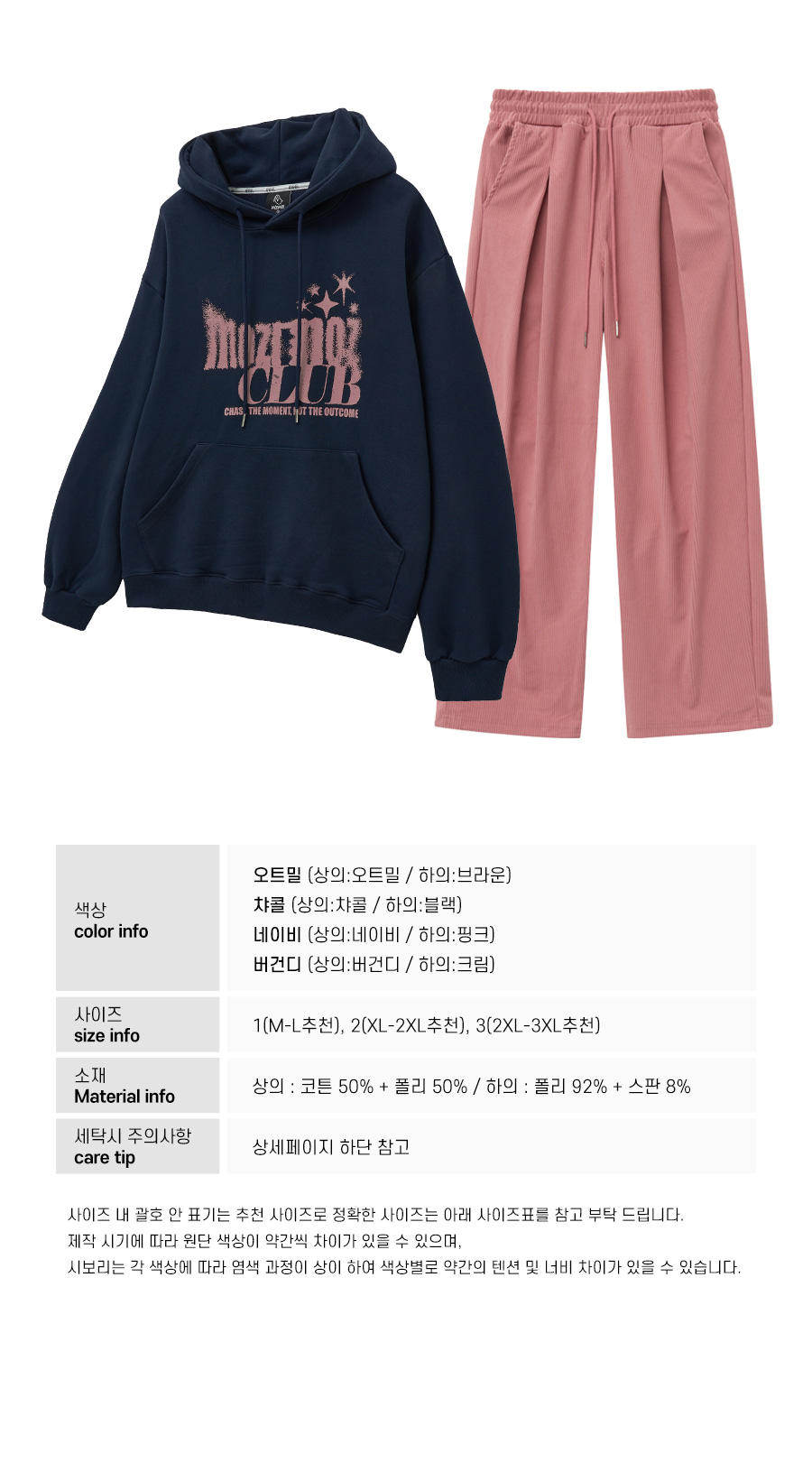 [SET] 페이딩 오버핏 후드 + 코듀로이 원턱 와이드 팬츠 네이비