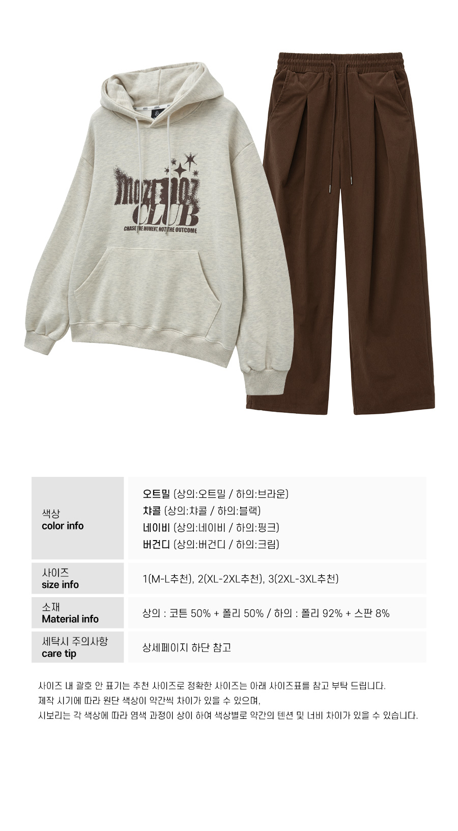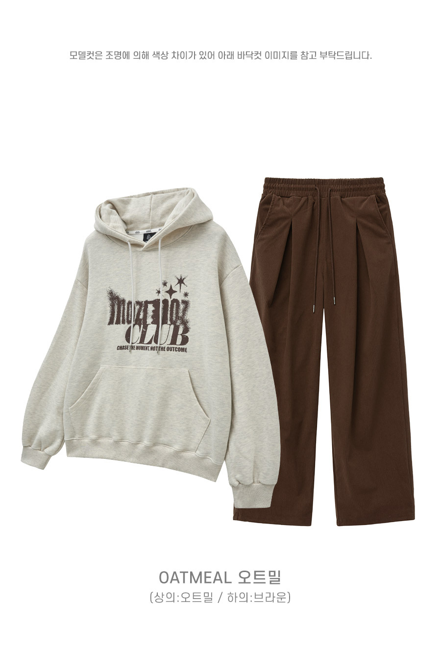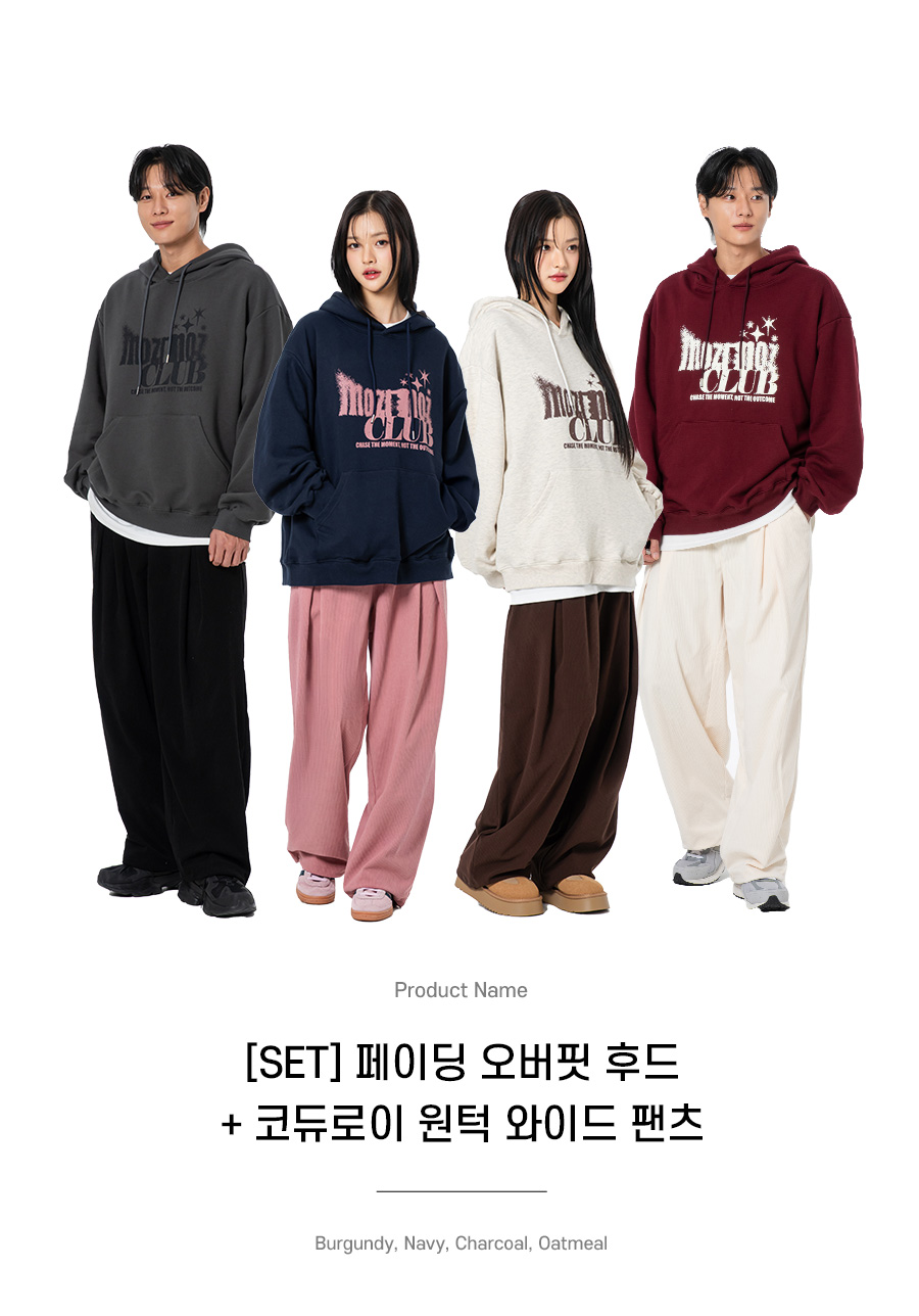 [SET] 페이딩 오버핏 후드 + 코듀로이 원턱 와이드 팬츠 오트밀