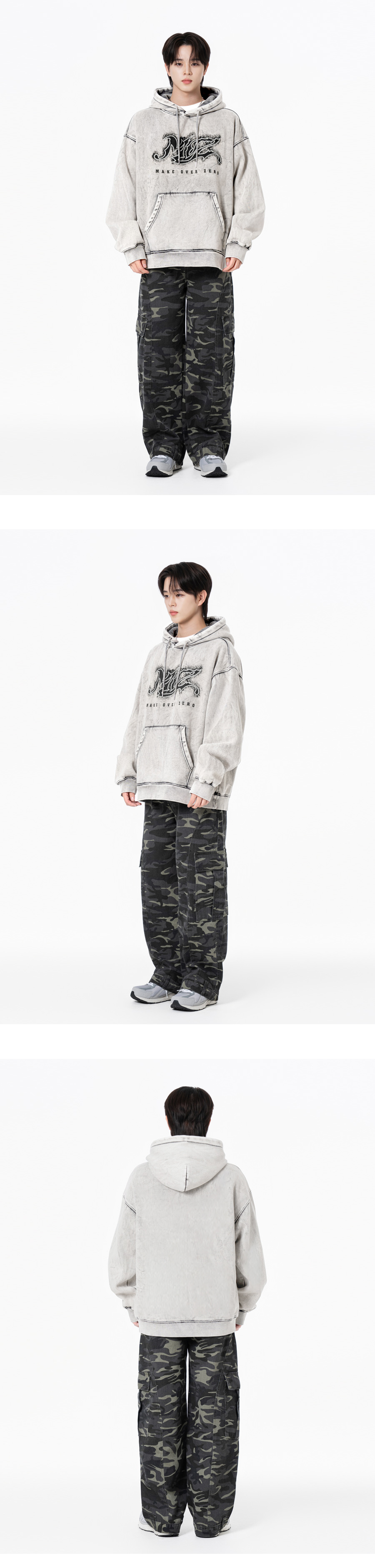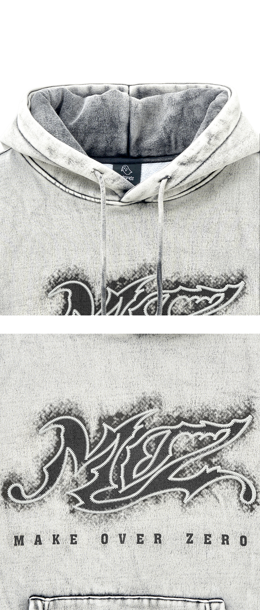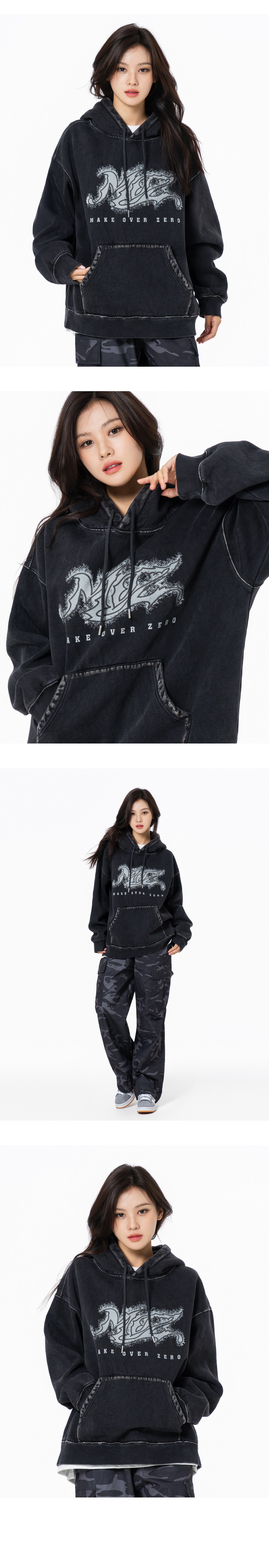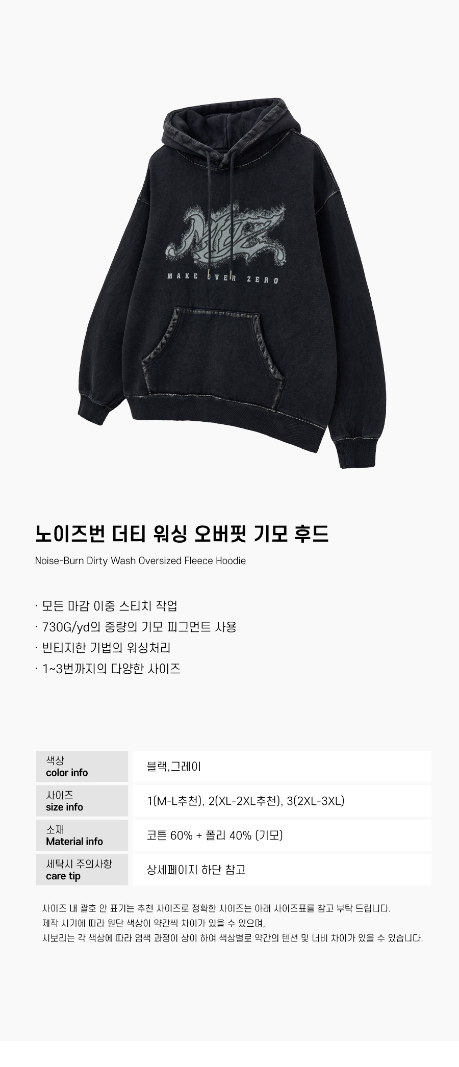 노이즈번 더티워싱 오버핏 기모 후드 블랙