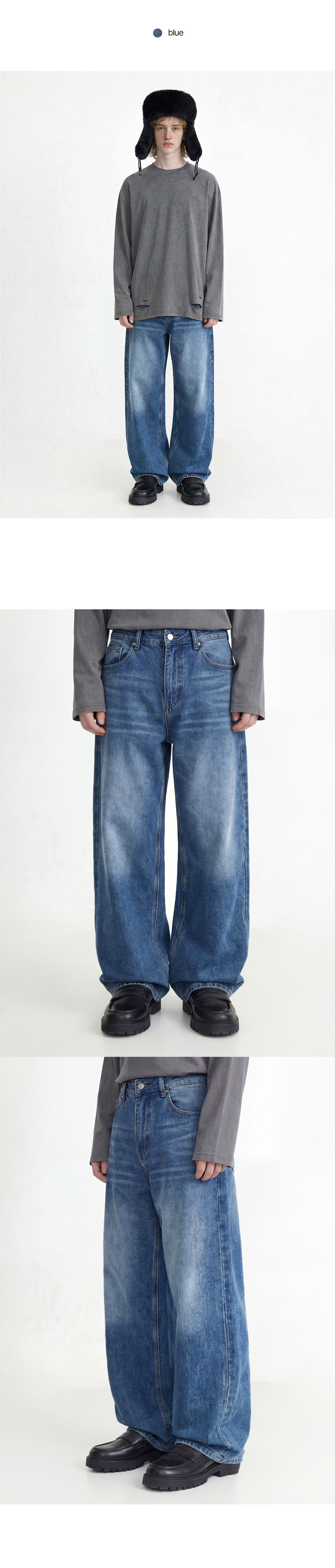Basic washing denim pants (blue)