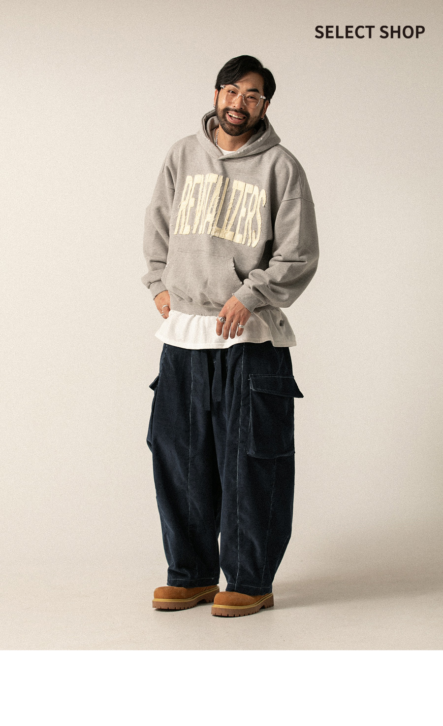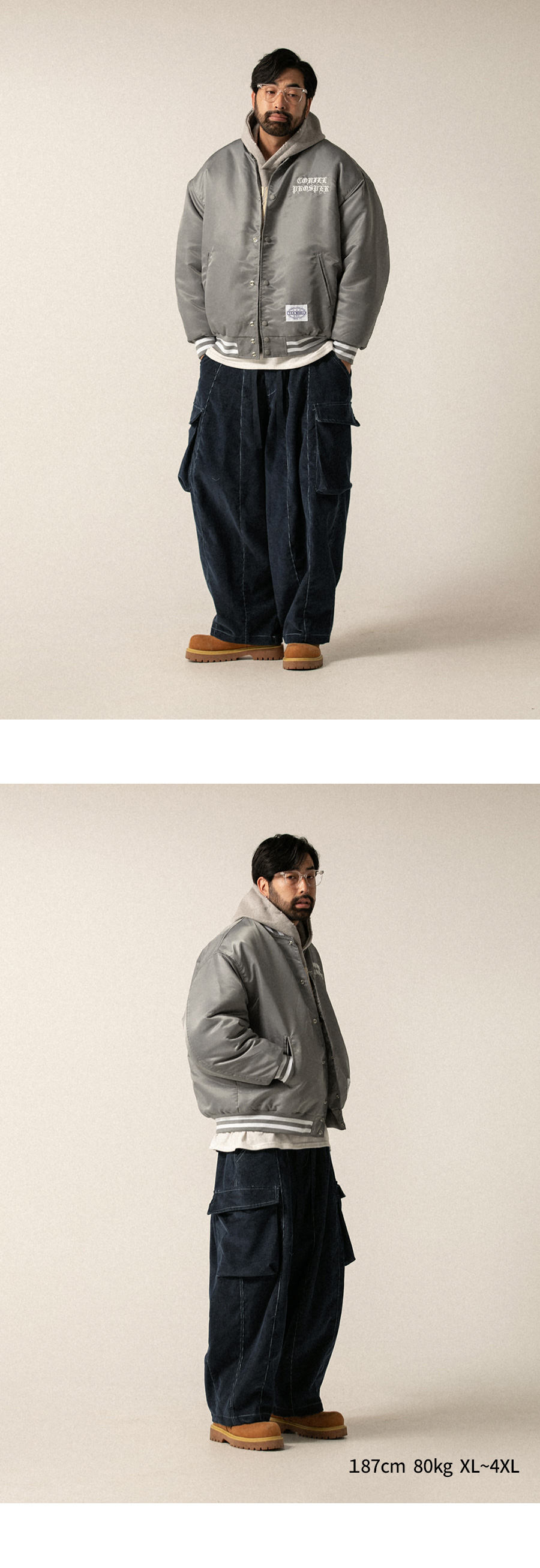⦁ 와이드한 벌룬 실루엣과 감각적인 골조직이 조화를 이뤄 스트릿 패션이나 아메카지 룩으로 연출하기에 최적화된 아이템입니다.