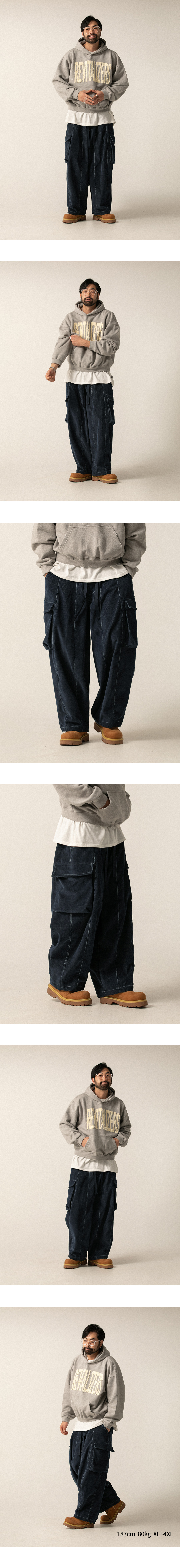 ⦁ 양 사이드의 카고 주머니 디테일이 실용적인 수납을 도와주며, 자칫 밋밋할 수 있는 라인에 확실한 스타일 포인트를 부여합니다.