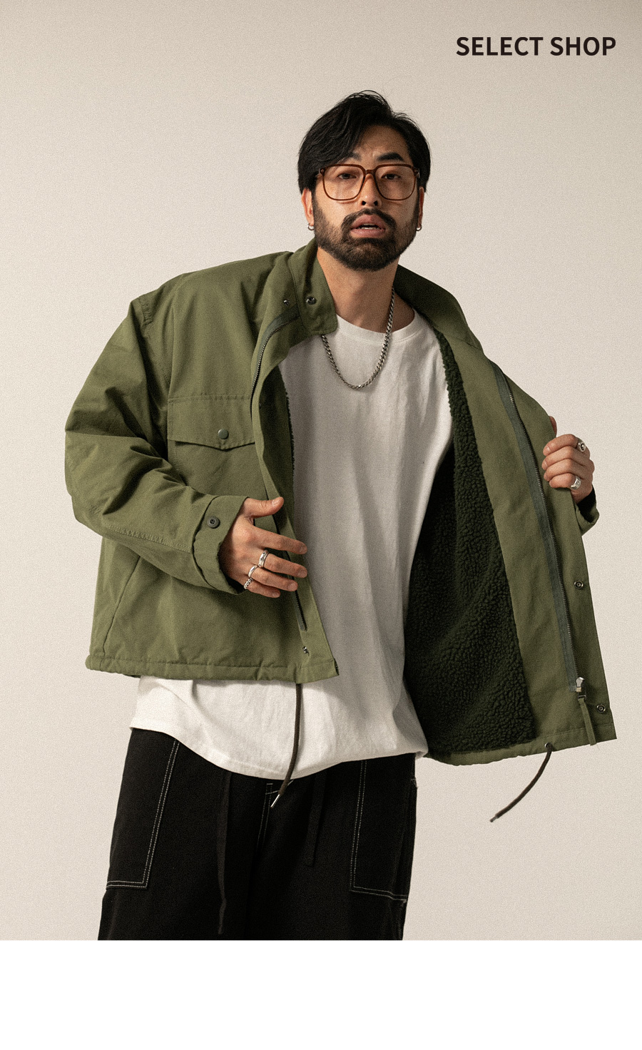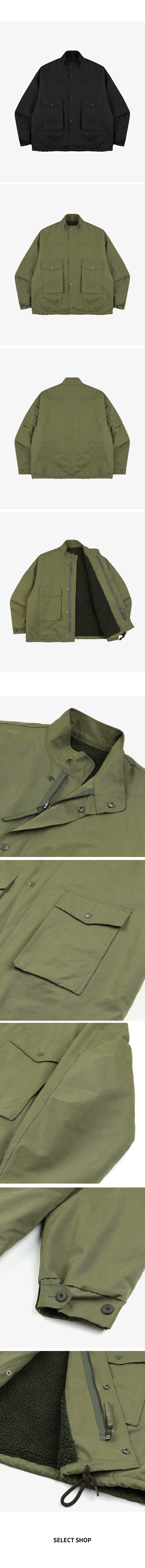 ⦁ 탄탄한 질감이 돋보이는 코튼 혼방 소재로 제작되어 변형 없이 오랫동안 착용하기 좋은 하이넥 자켓입니다