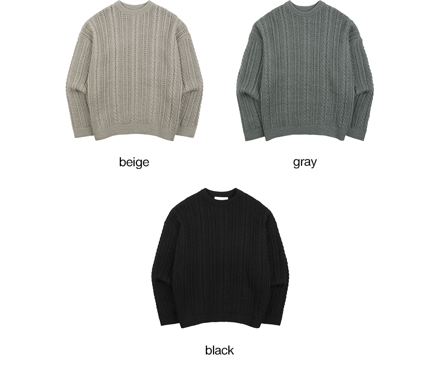 울 꽈배기 라운드 니트 3컬러