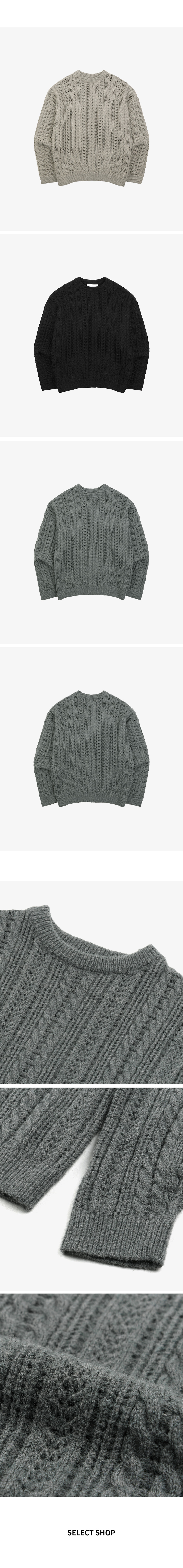 ⦁ 포근하고 부드러운 터치감이 돋보이는 케이블 꽈배기 니트입니다