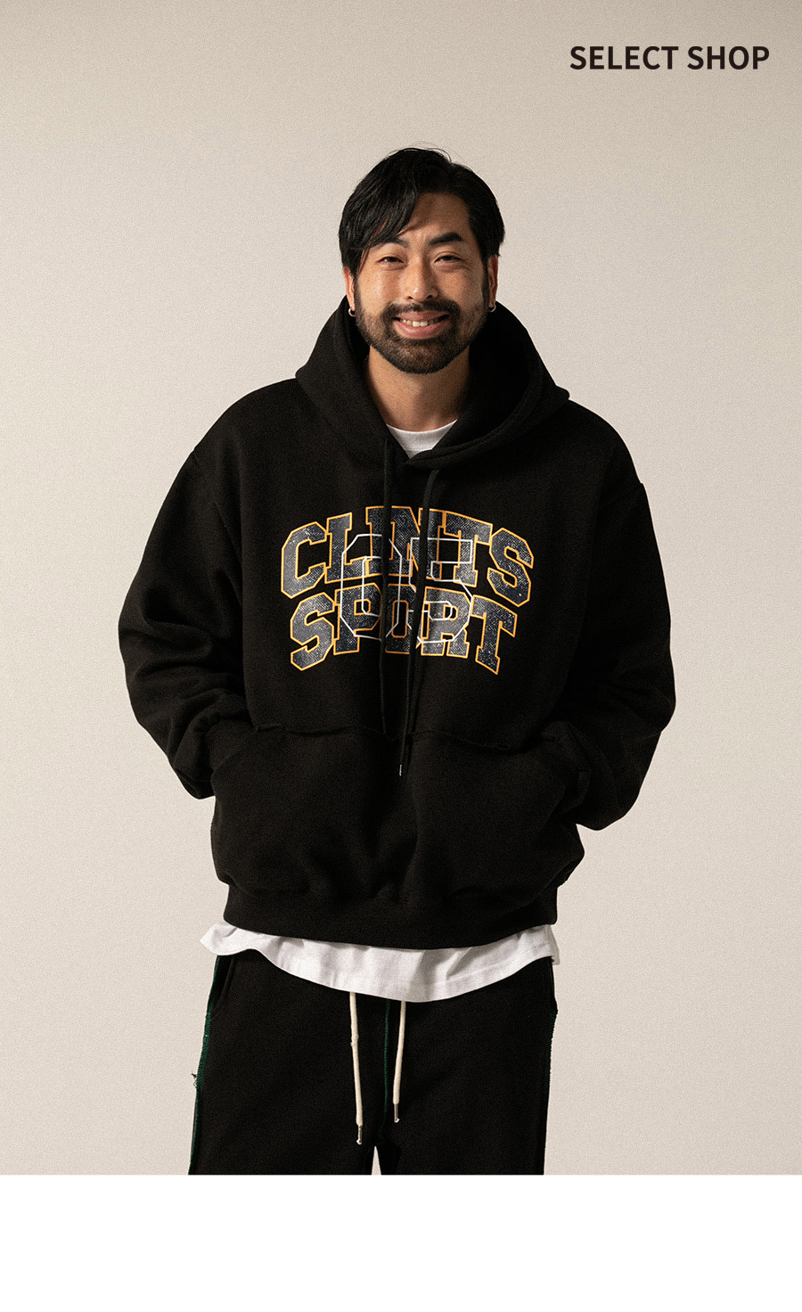 ⦁ 전면의 감각적인 프린트 디테일이 시선을 사로잡으며 실용적인 캥거루 포켓을 적용하여 소지품 수납과 손 보온을 동시에 챙겼습니다