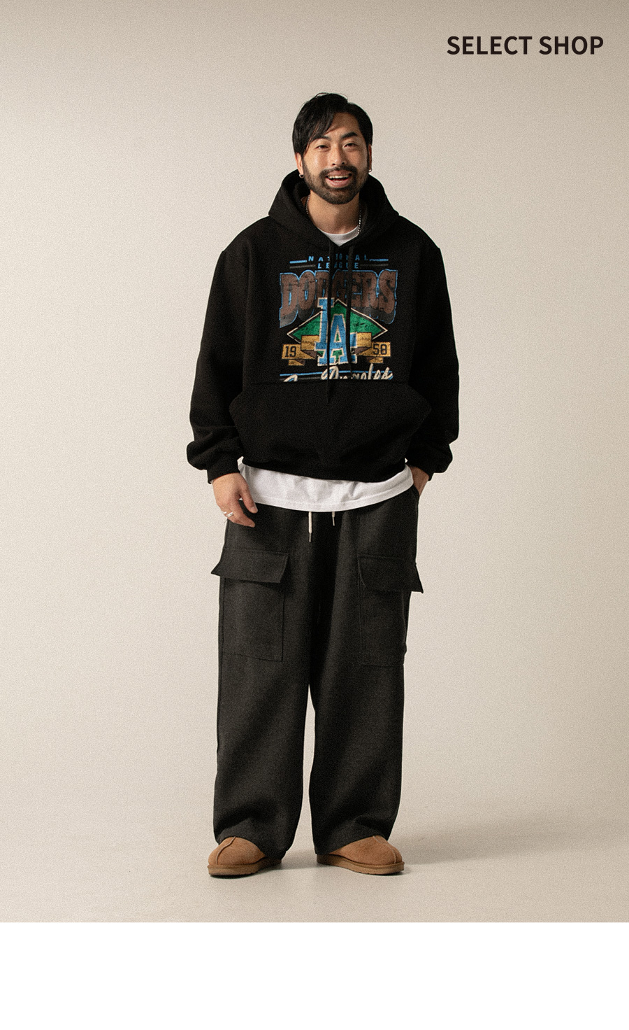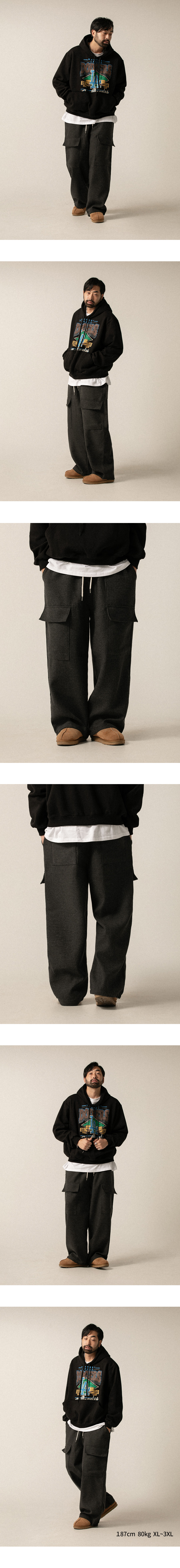 ⦁ 허리 밴딩과 스트링으로 체형에 맞게 조절 가능하며 입체적인 카고 포켓과 밑단 스트링 디테일로 실용성과 스타일을 모두 챙겼습니다