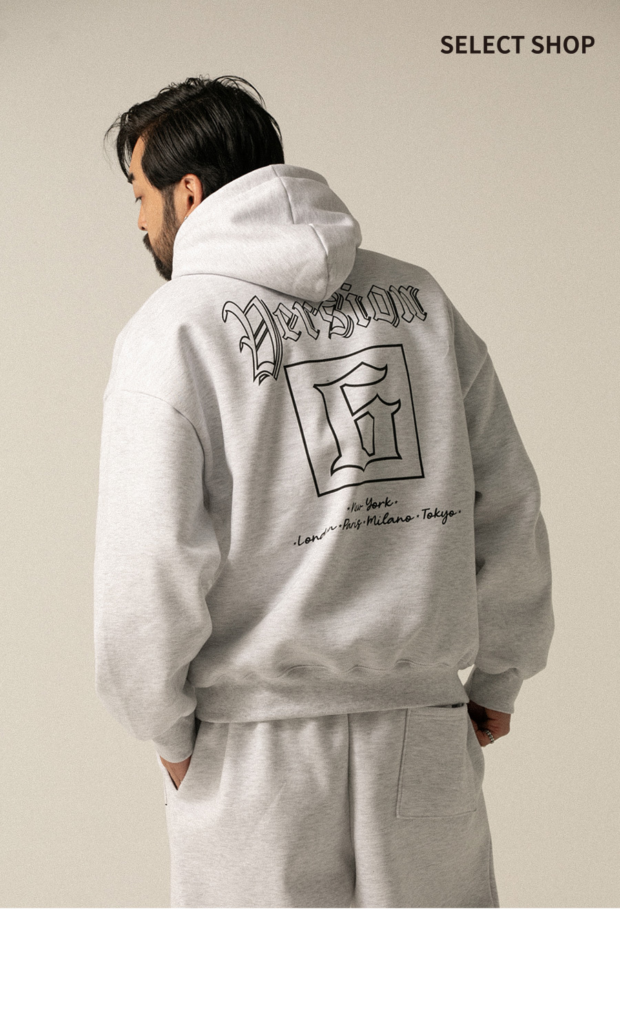 ⦁ 전면&후면에 영문 나염 프린팅이 강조된 후드 티셔츠입니다