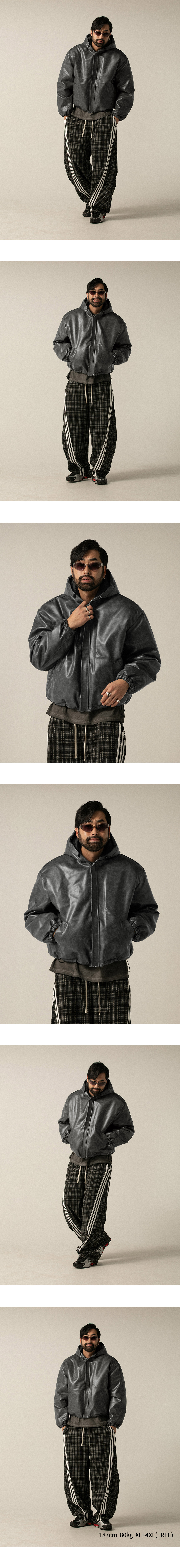 ⦁ 매트한 광택이 도는 두께감있는 고퀄리티 비건레더자켓