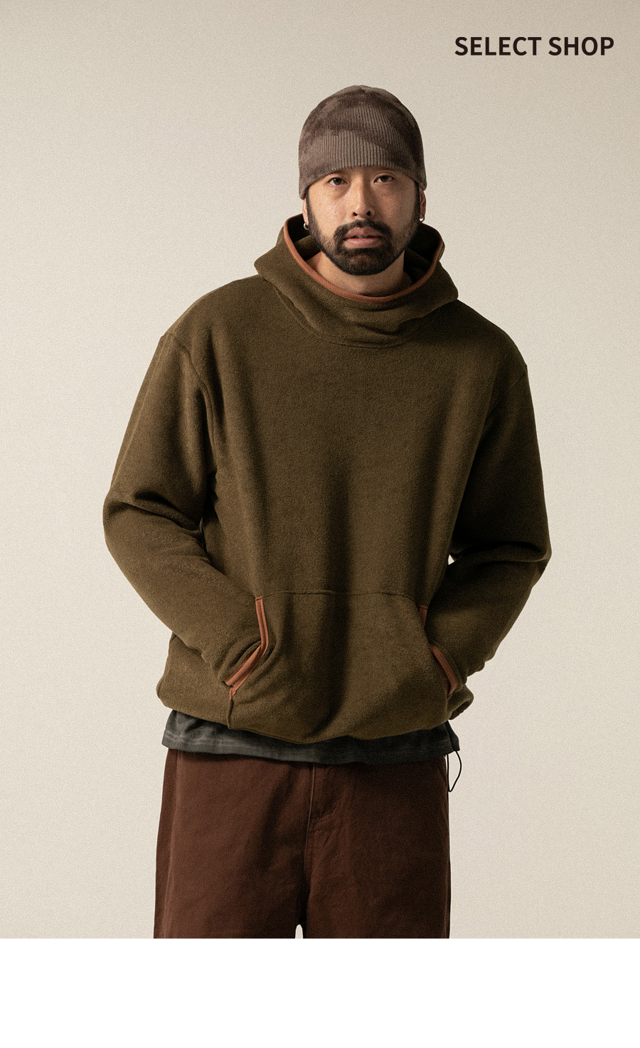⦁ 후드 라인과 포켓 입구에 배색 파이핑 디테일을 더해 단조로움을 피하고 감각적인 포인트를 살렸습니다