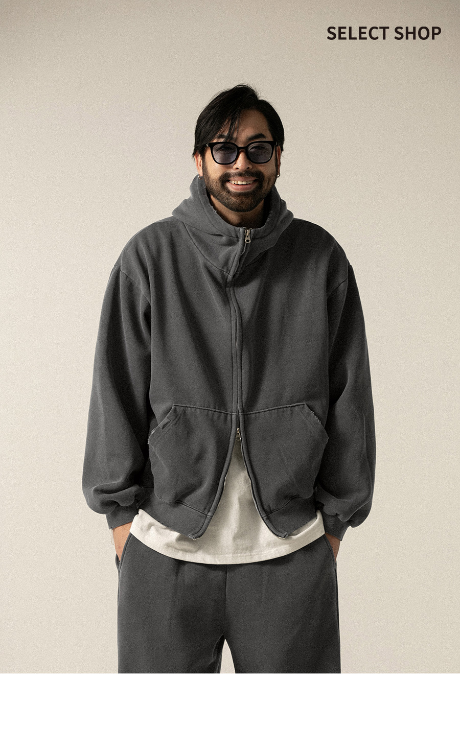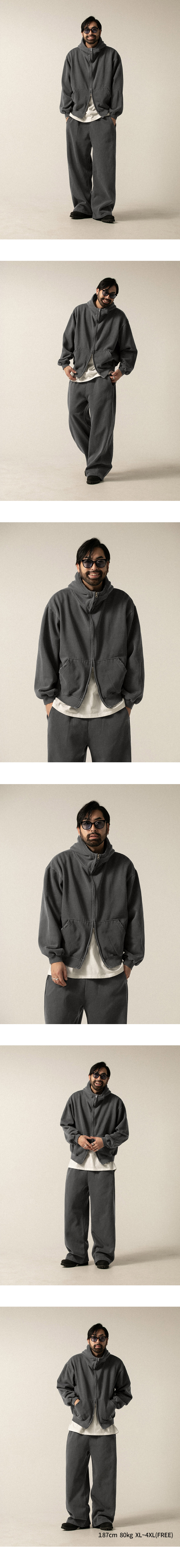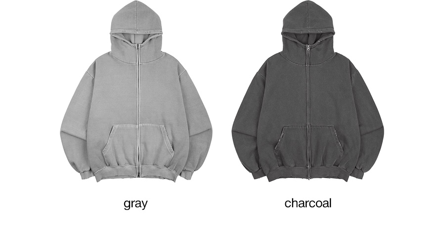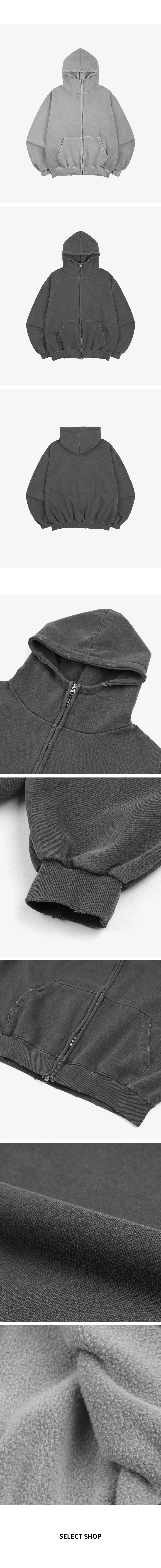 데미지 피그먼트 기모 후드집업 2컬러