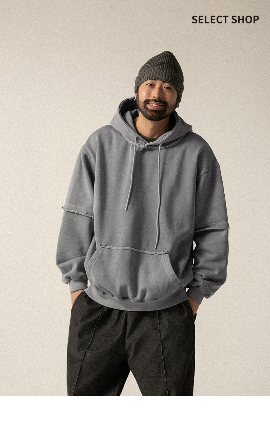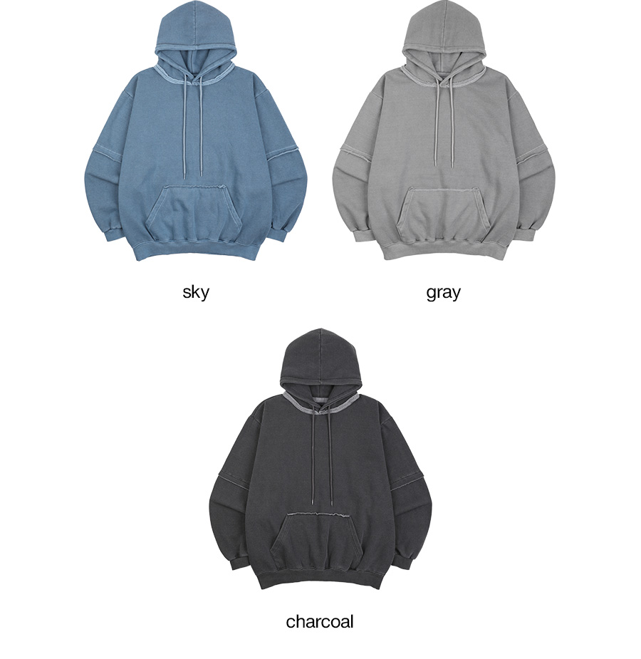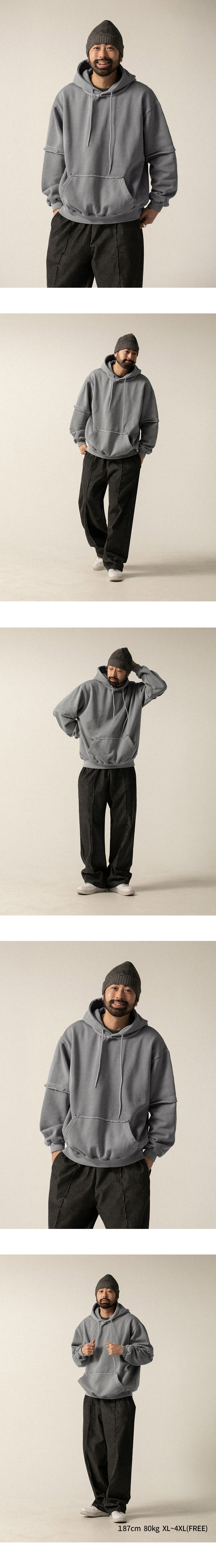 ⦁ 트렌디한 무드가 느껴지는 오버핏 실루엣에 빈티지한 절개 디테일을 더해 유니크한 감성을 살린 후드티입니다