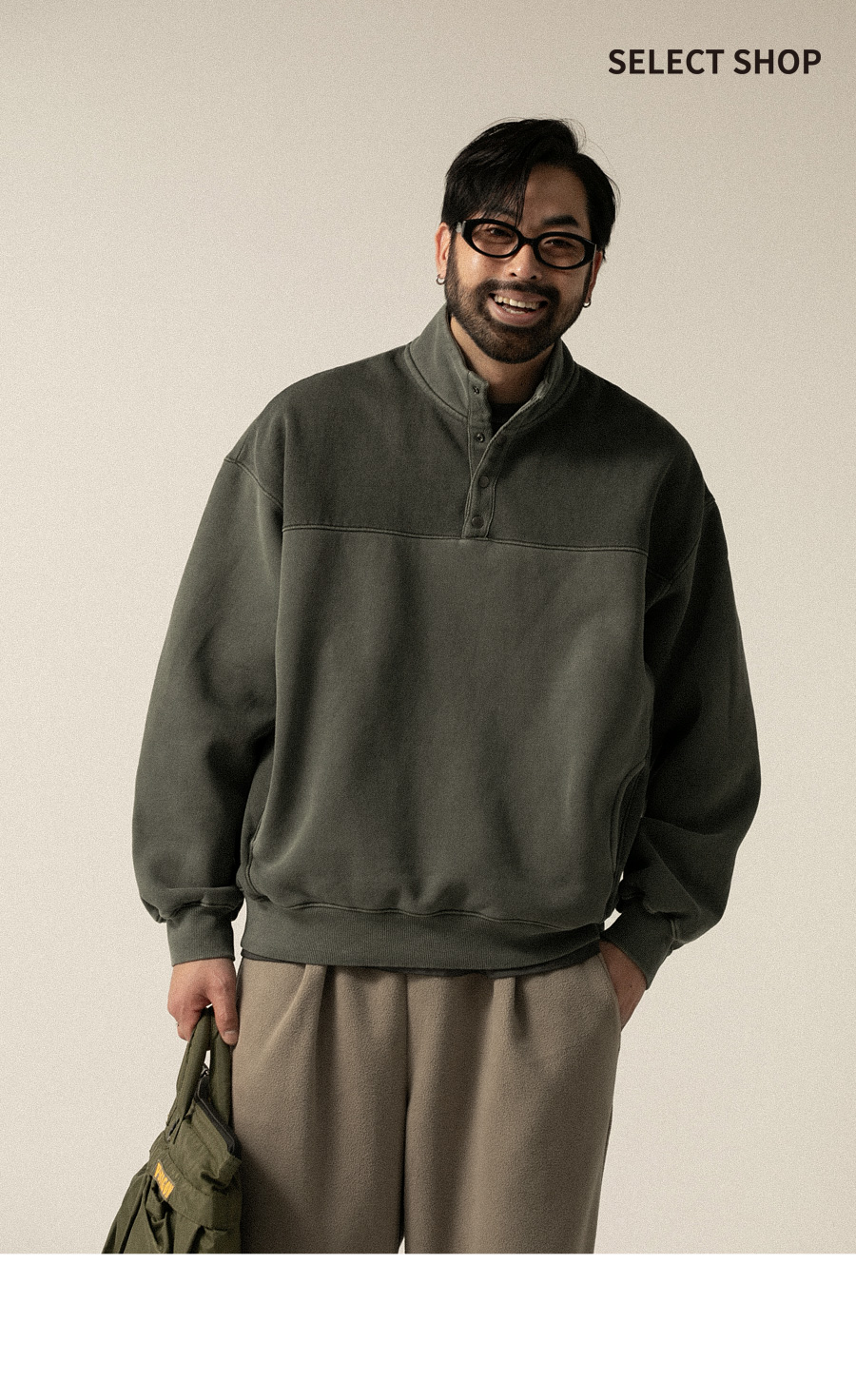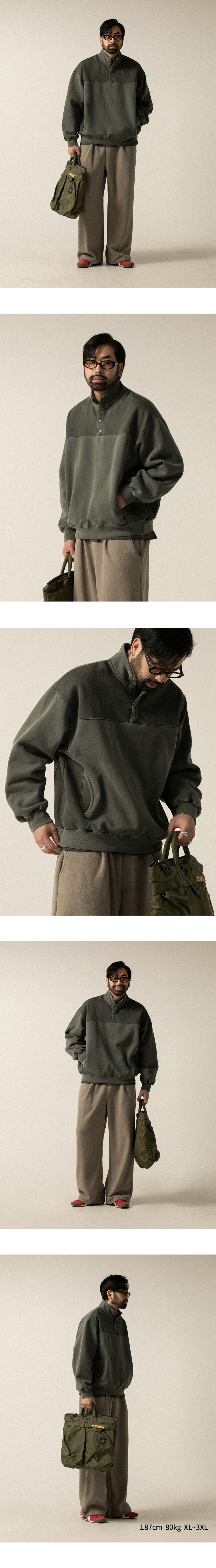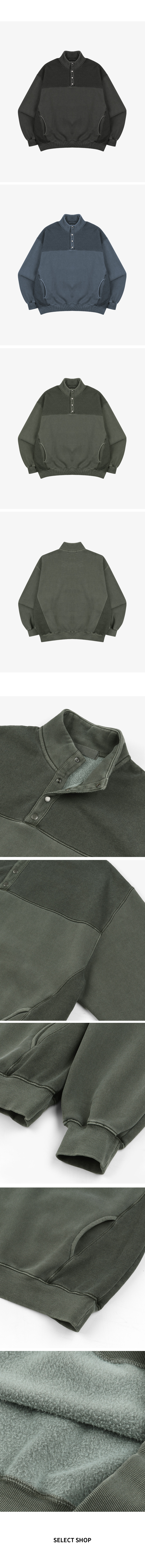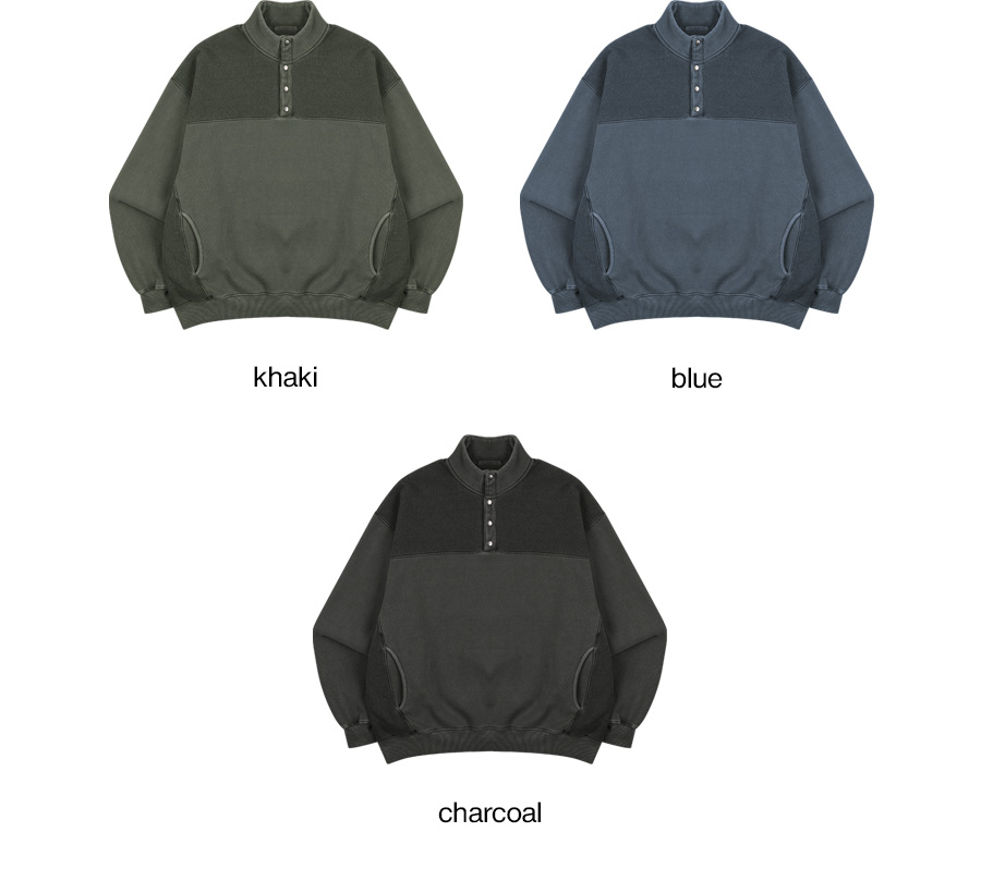 피그먼트 기모스냅 반집업 맨투맨 3컬러