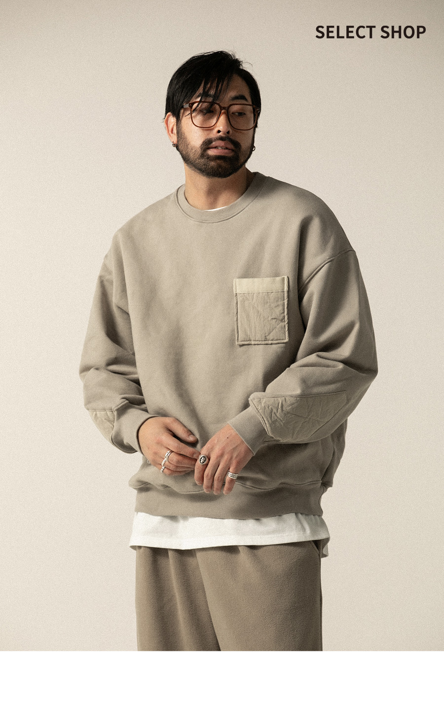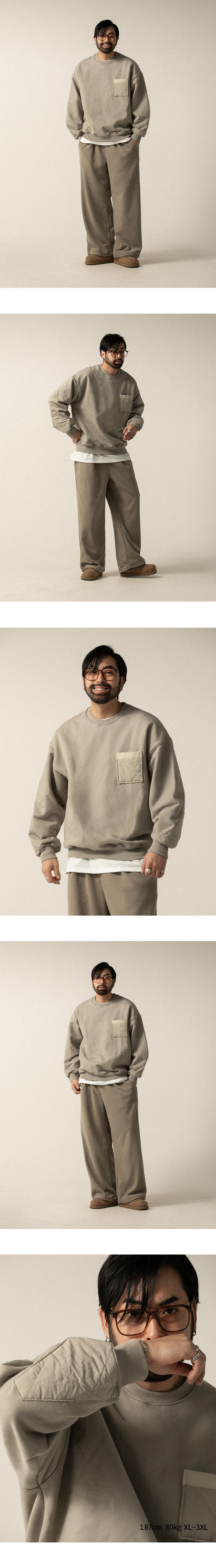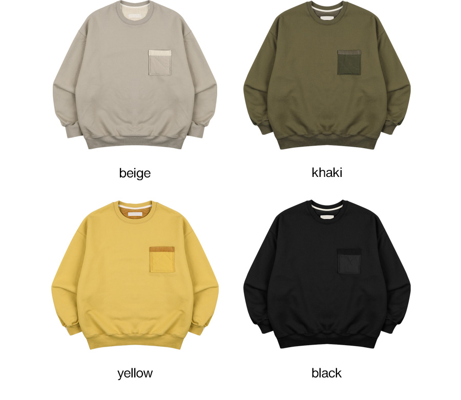 ⦁ 미니멀한 디자인에 퀼팅 가슴 포켓으로 포인트를 더한 오버핏 맨투맨입니다.