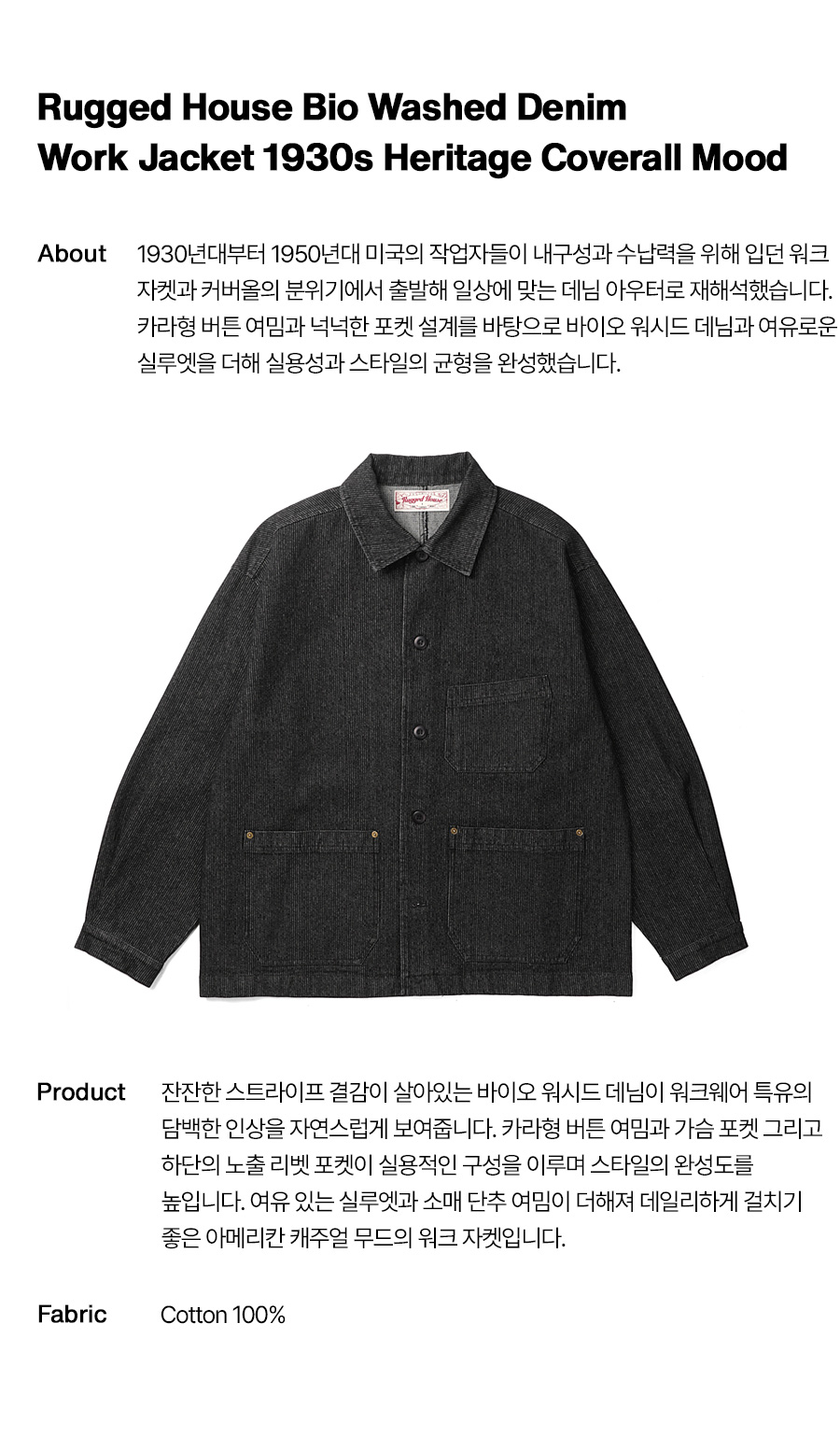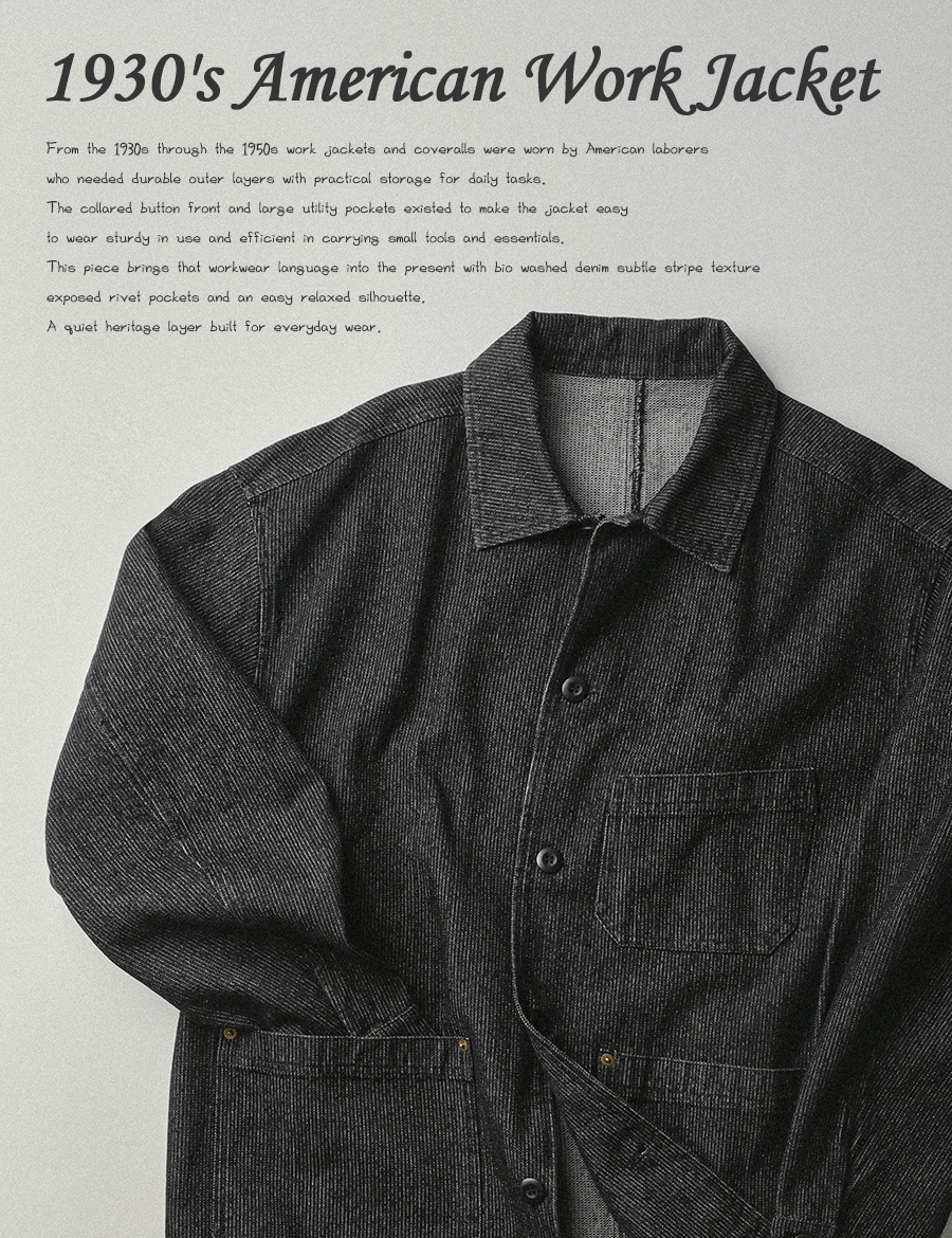바이오 워시드 데님 워크 자켓 블랙