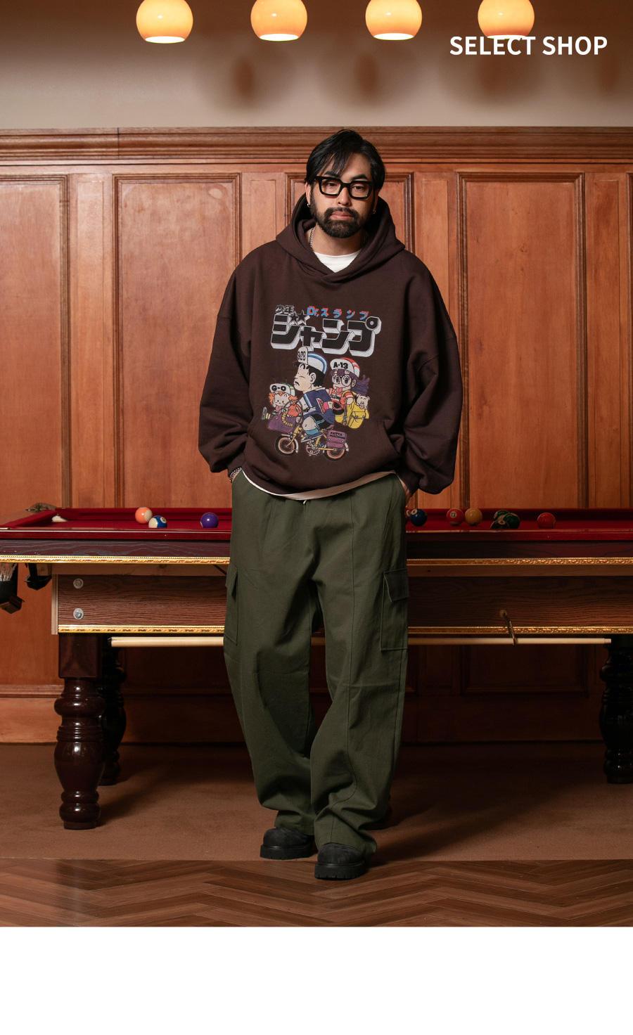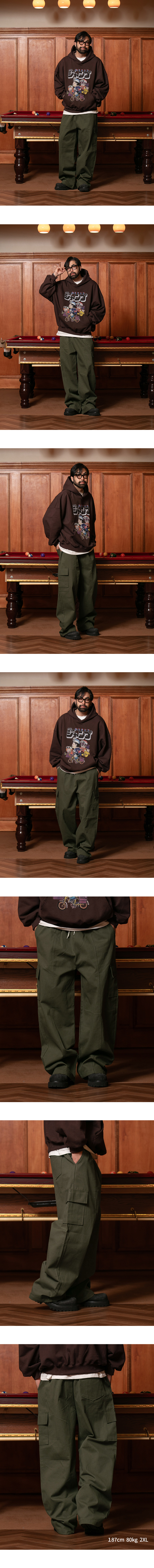 ⦁ 양 사이드의 넉넉한 카고 포켓 디테일이 실용적인 수납을 도와주며 워크웨어 특유의 와일드한 무드를 완성합니다.