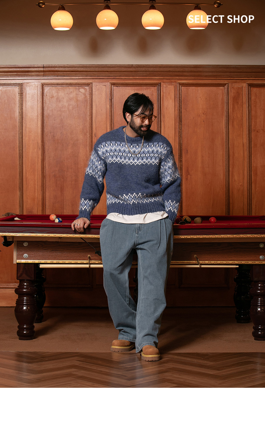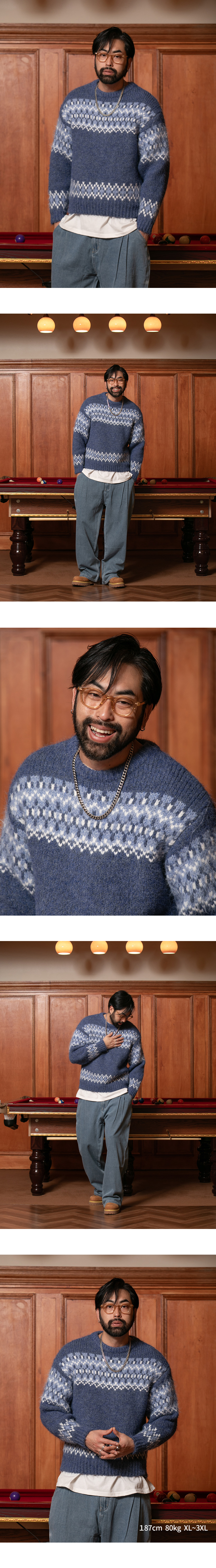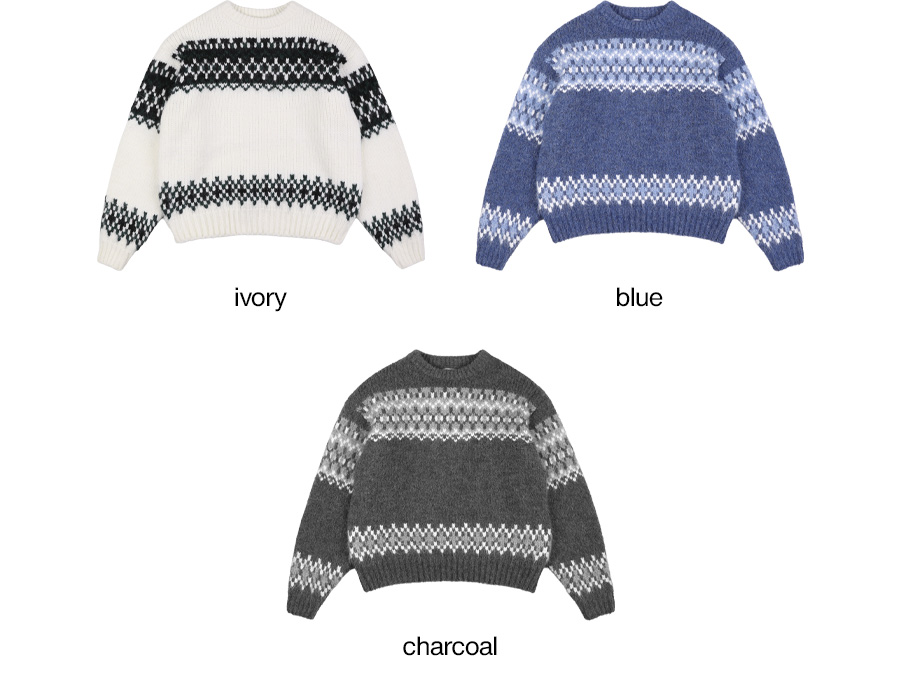 ⦁ 자카드 패턴이 포인트가 되는 라운드넥 니트입니다