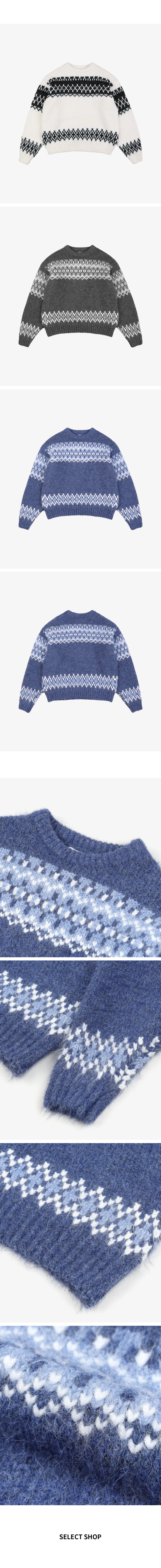 자카드 라운드 모헤어 니트 3컬러