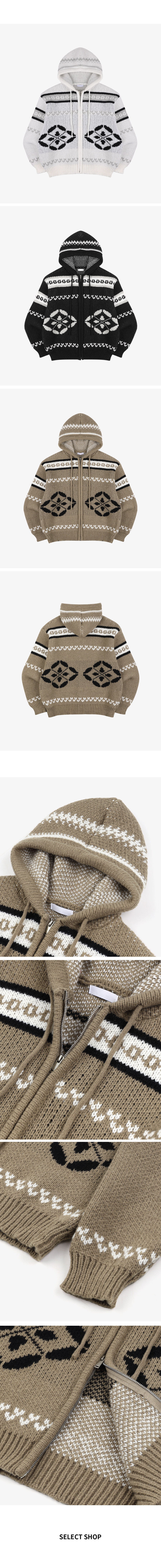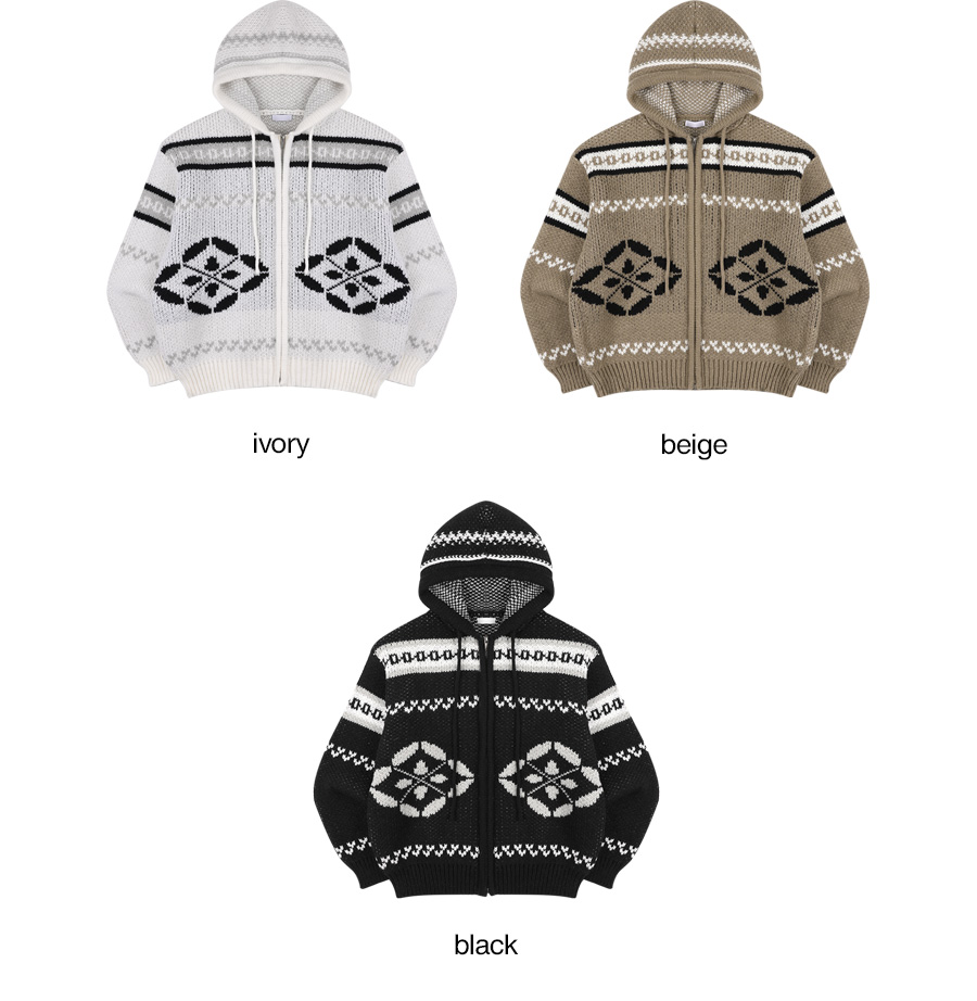 노르딕 니트 후드집업 3컬러