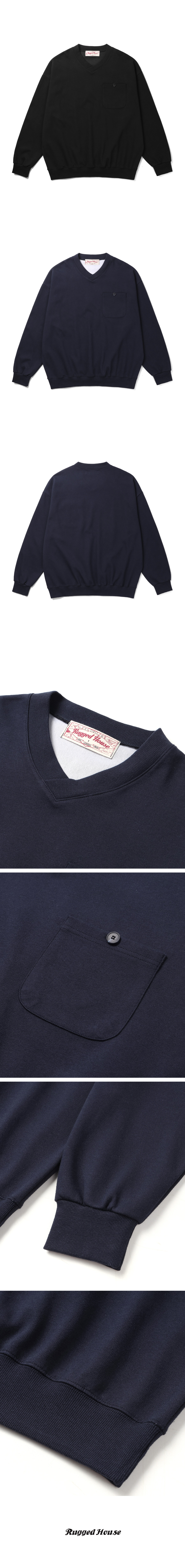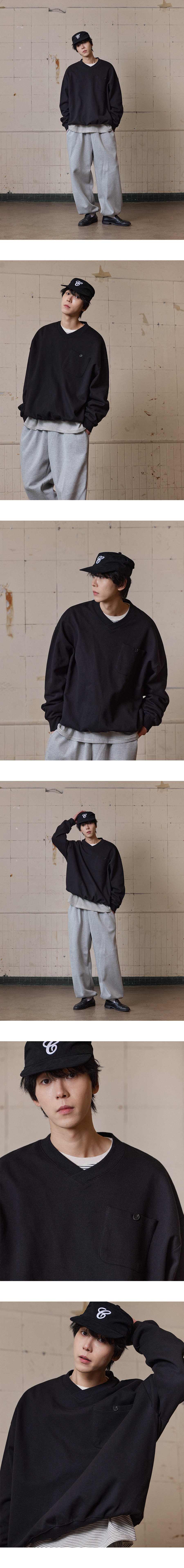 마일즈 원포켓 브이넥 맨투맨 블랙