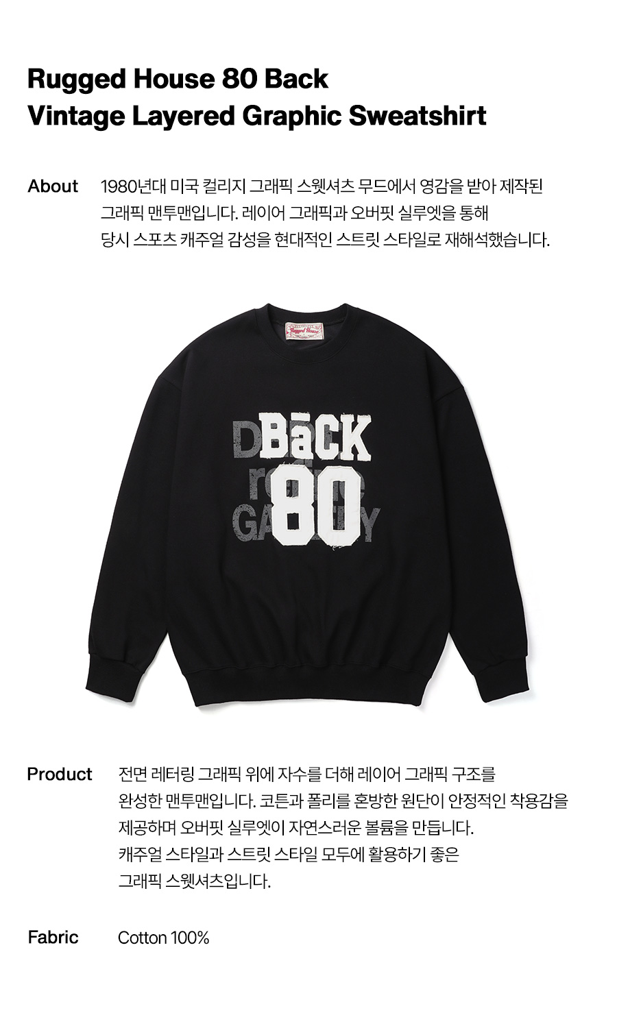 ⦁ 캐주얼 룩부터 스트릿 스타일링까지 다양하게 활용할 수 있는 그래픽 맨투맨입니다.