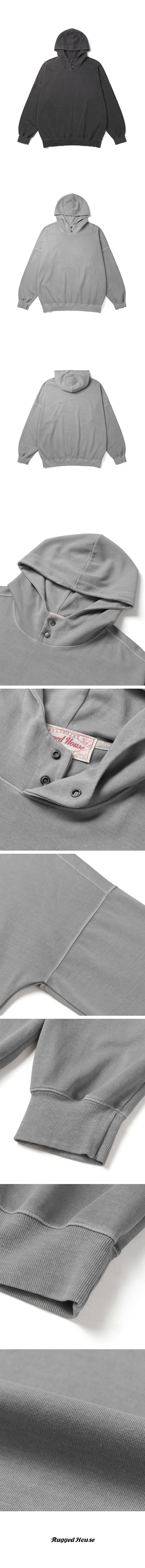 스냅 버튼 피그먼트 워싱 후드티 멜란지그레이