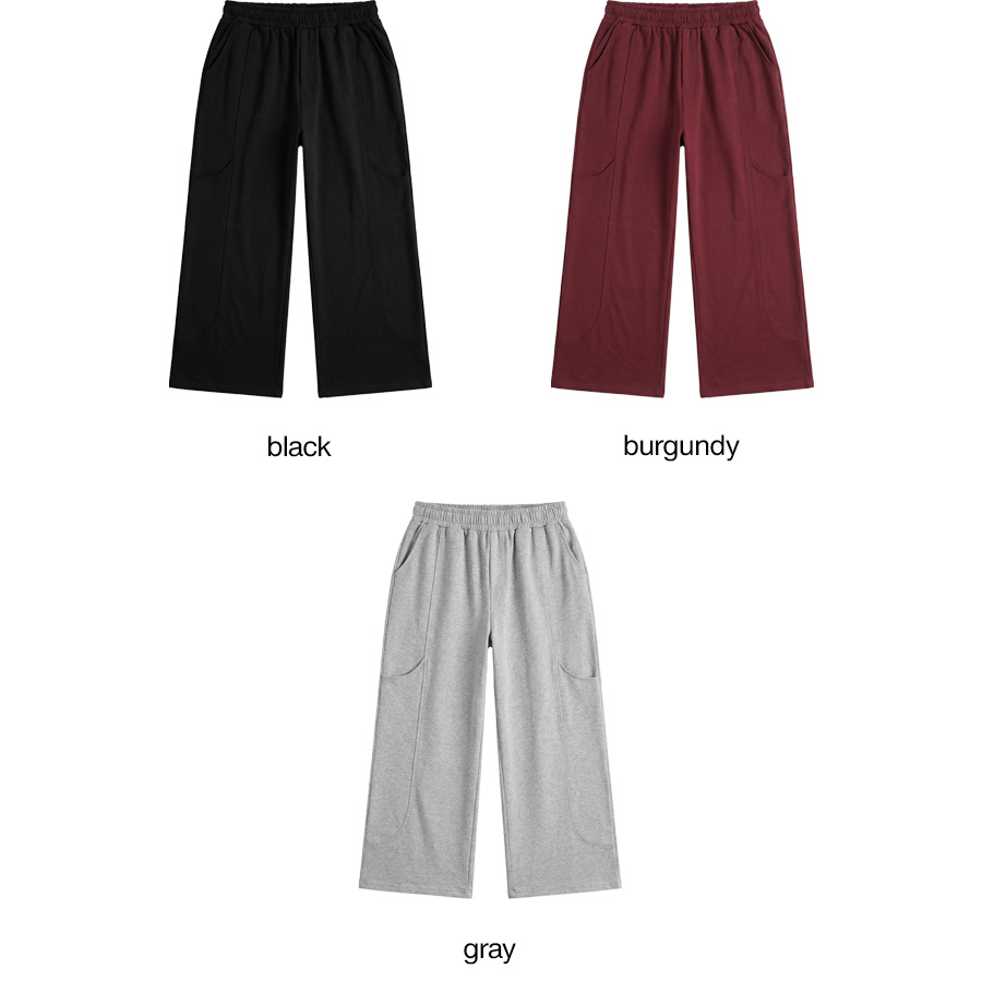 ⦁ 무릎과 허벅지 부분에 곡선으로 이어지는 절개 라인이 입체적인 실루엣을 만들어주는 세미와이드 팬츠입니다.
