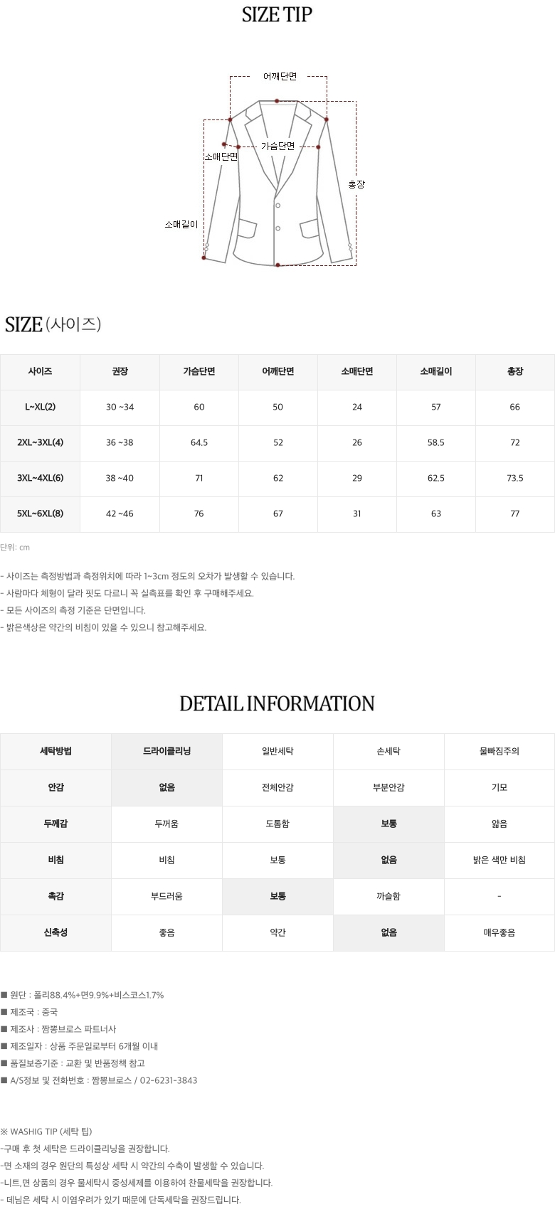 - 상품 상세란의 사이즈표는 업체 기준 측정정보 입니다.