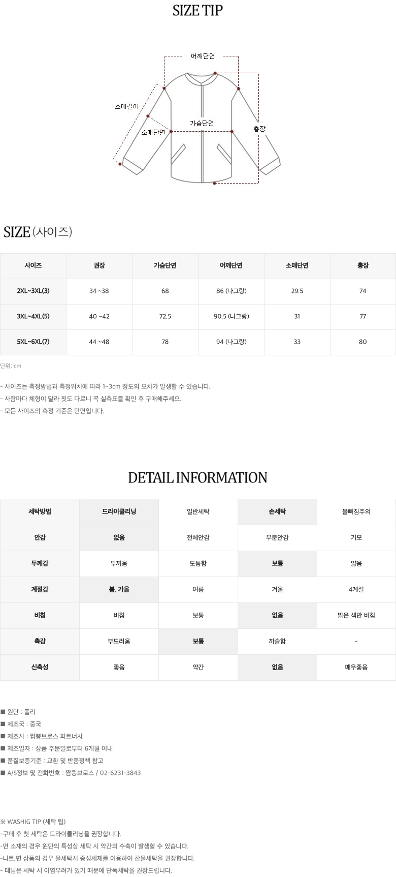 | 어깨 | 가슴둘레 | 소매 | 암홀둘레 | 총길이 | |