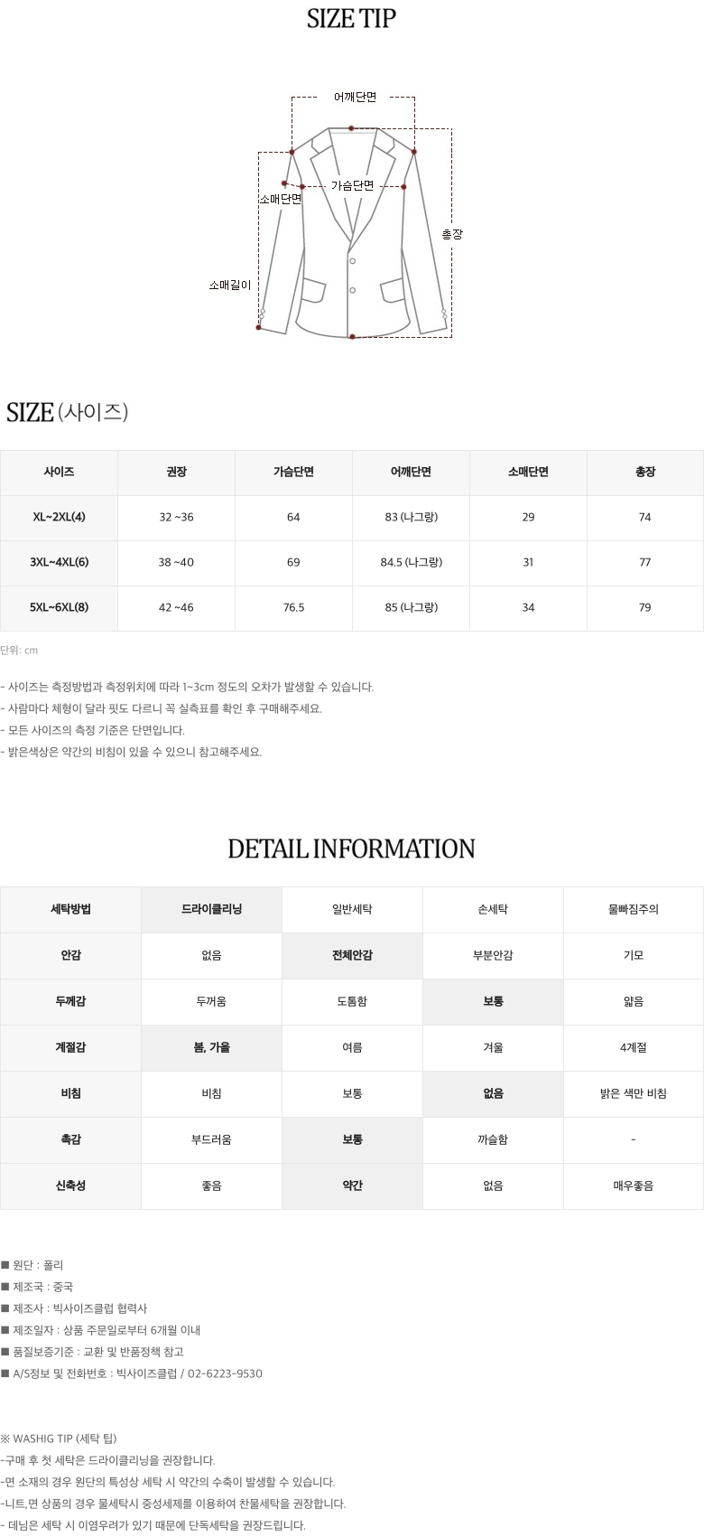 | 어깨 | 가슴둘레 | 소매 | 암홀둘레 | 총길이 | |