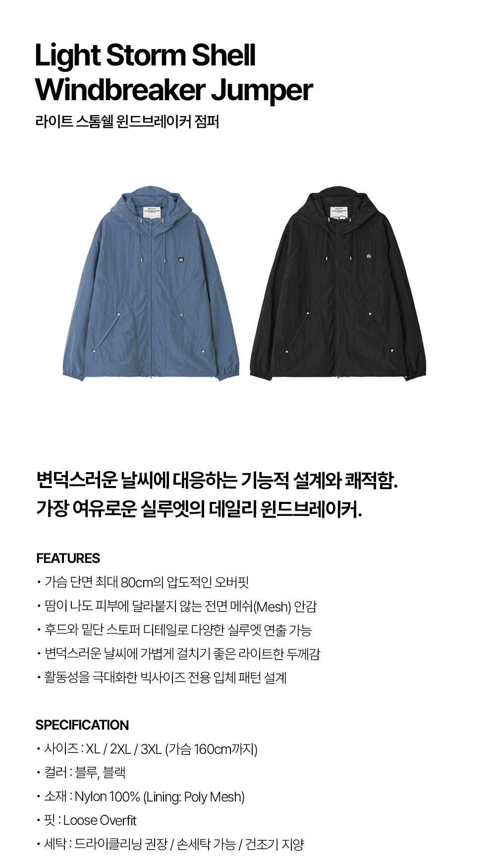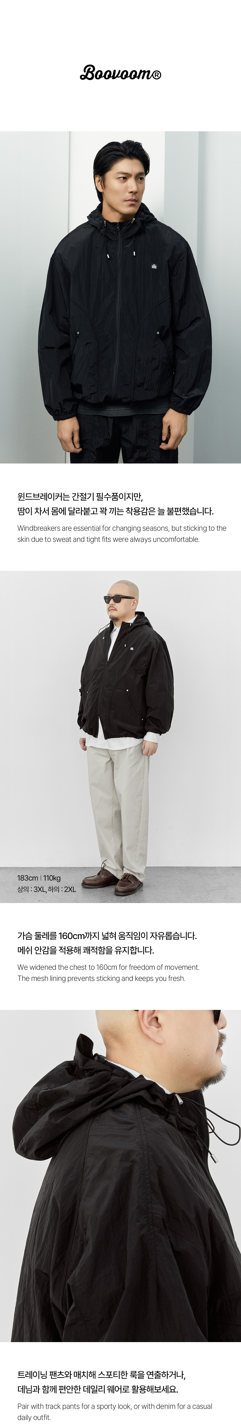 ⦁ 메쉬 안감과 넉넉한 핏으로 완성한 빅사이즈 윈드브레이커.