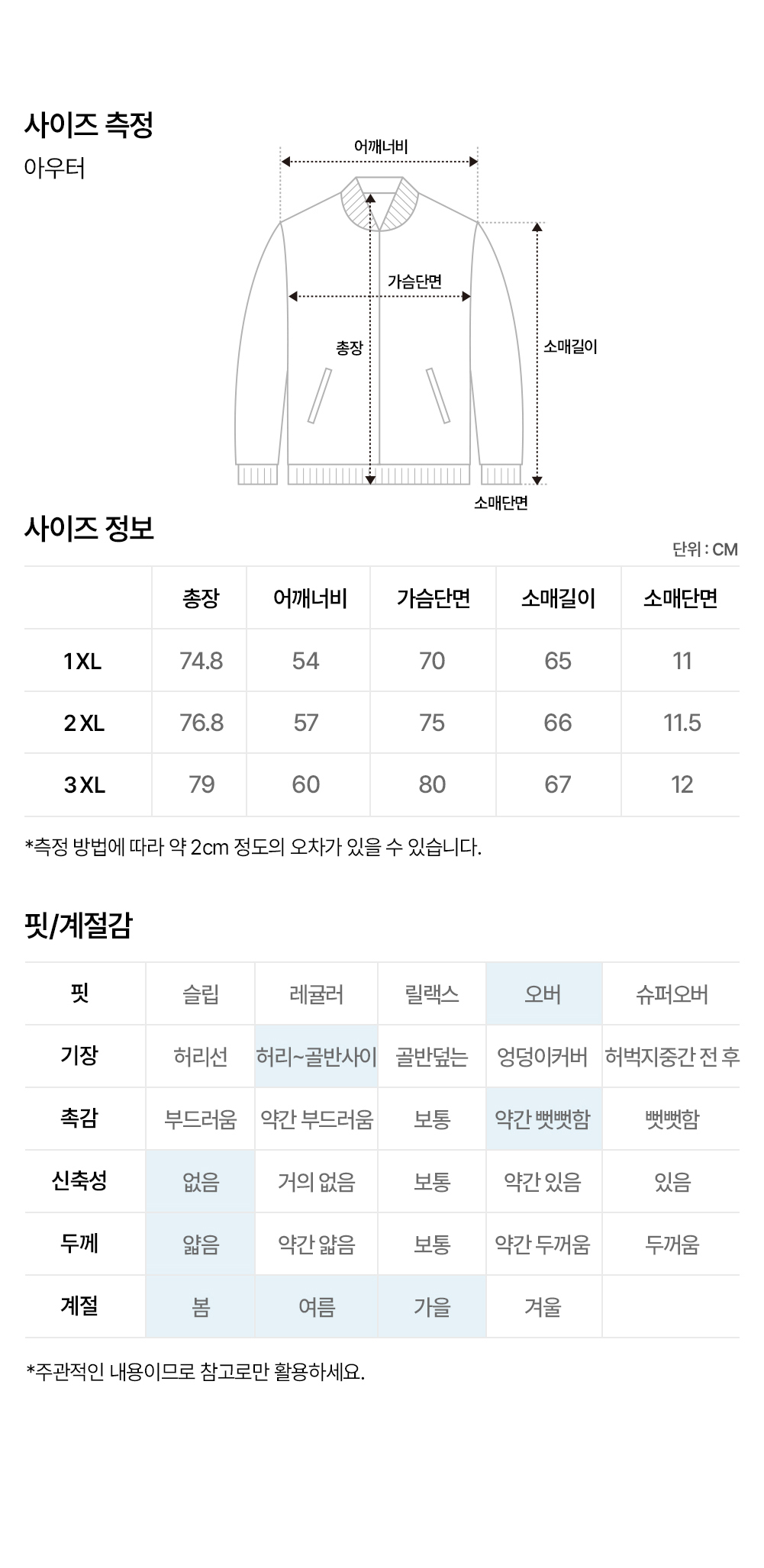 - 상품 상세란의 사이즈표는 업체 기준 측정정보 입니다.