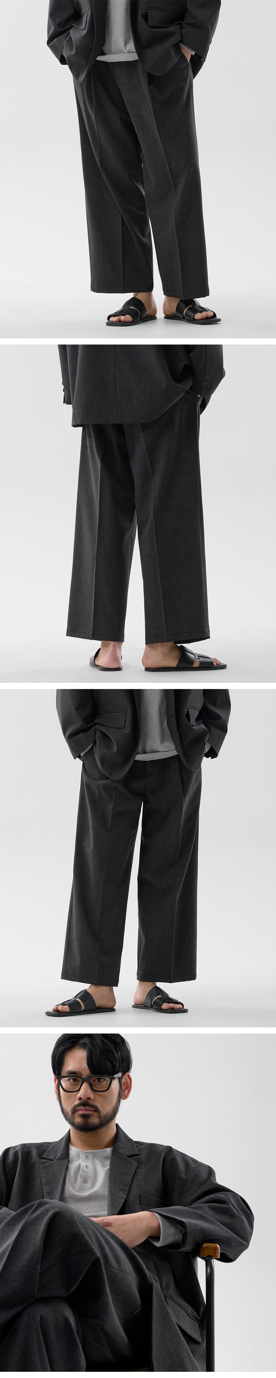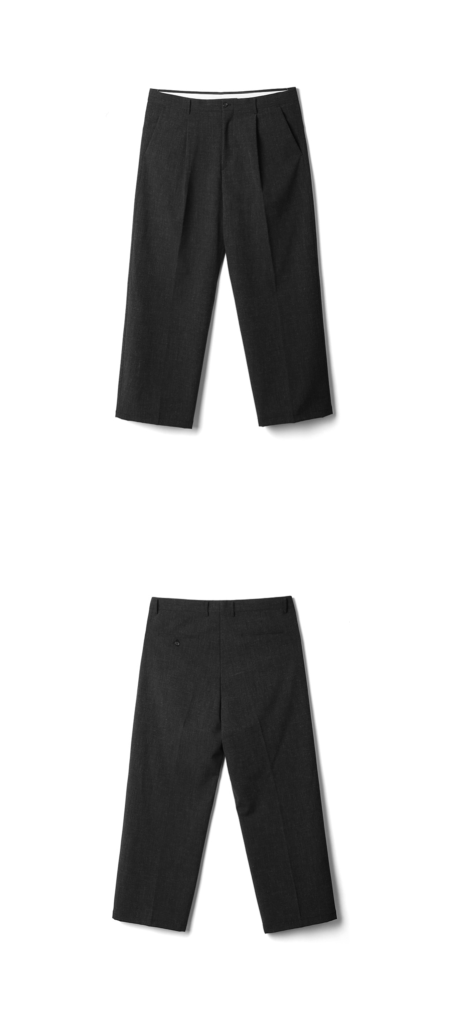 ⦁ 팬츠는 허벅지부터 밑단까지 넉넉하게 떨어지는 와이드핏 실루엣에 9부 기장으로 깔끔한 발목 라인을 연출하며 투턱 디테일이 볼륨감을 더합니다.