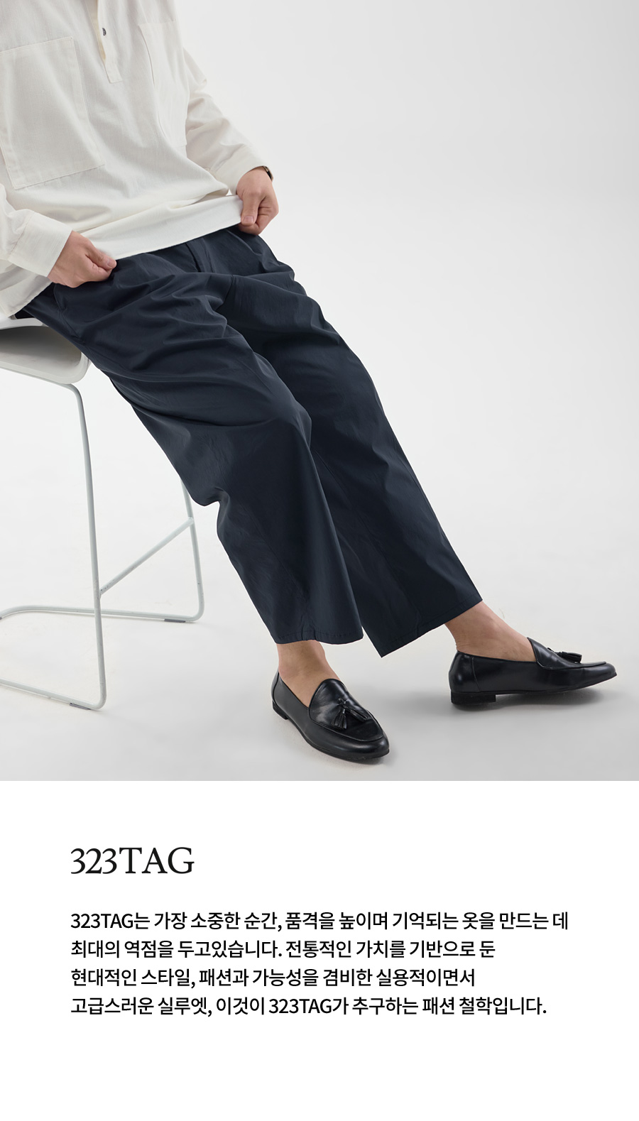 ⦁ 투턱 디테일이 더해진 나일론 팬츠로 깔끔하면서도 여유 있는 실루엣이 돋보이는 아이템입니다