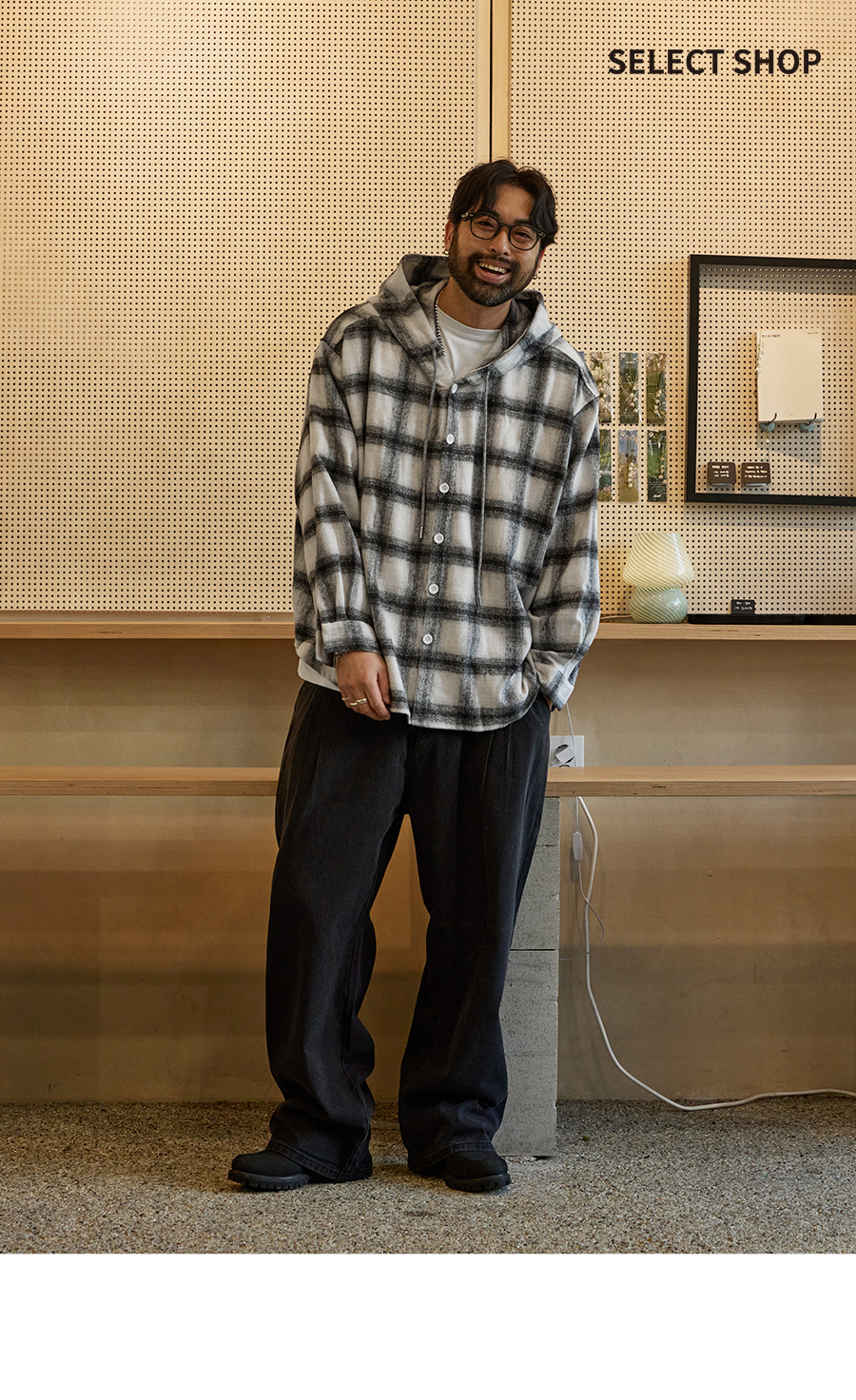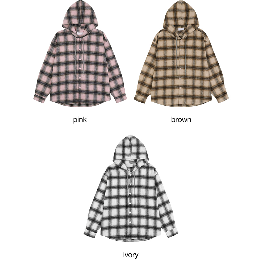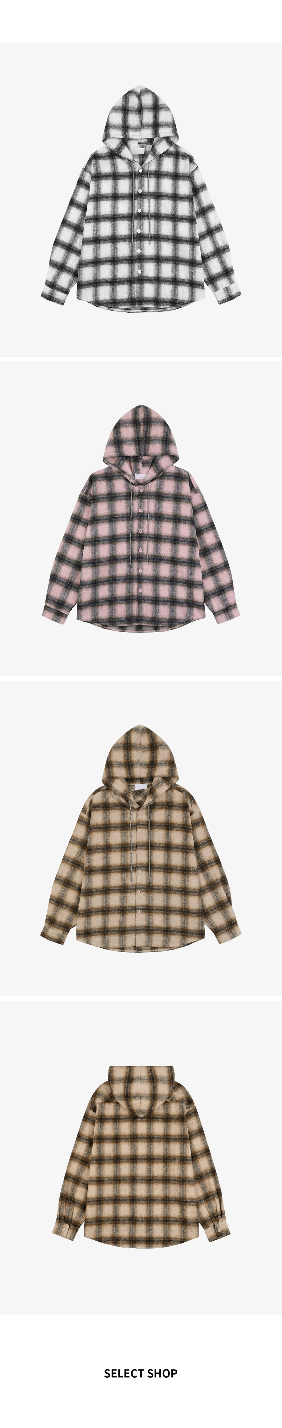 ⦁ 후드가 더해진 체크 패턴 디자인으로 캐주얼한 포인트를 주는 버튼 셔츠입니다