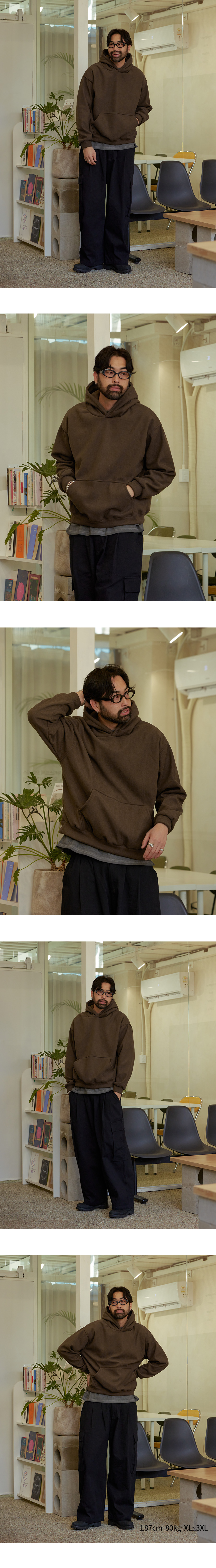 ⦁ 두툼한 원단이 고급스러운 무게감과 안정적인 형태감을 제공하며 앞면 캥거루 포켓이 손을 넣기 편하게 설계되어 실용성을 더했습니다.