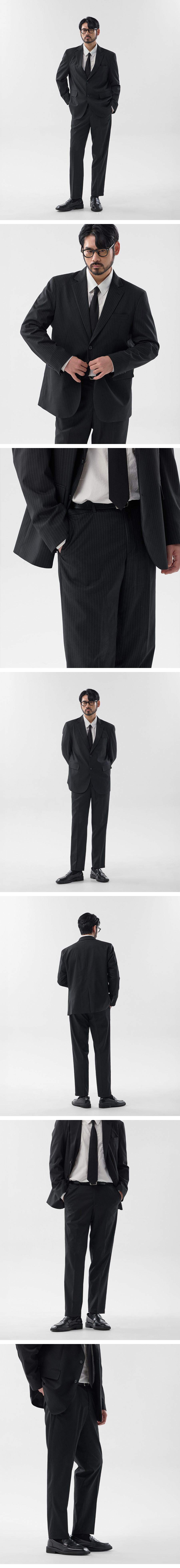 모던 스트라이프 블레이저 셋업 블랙