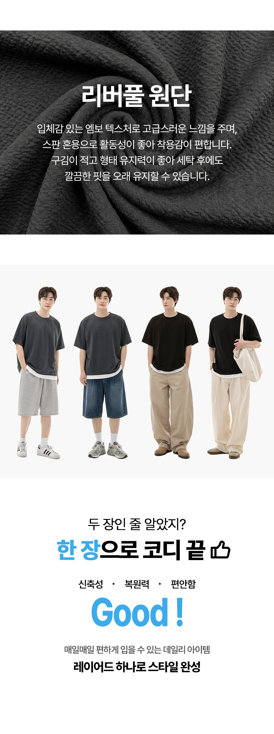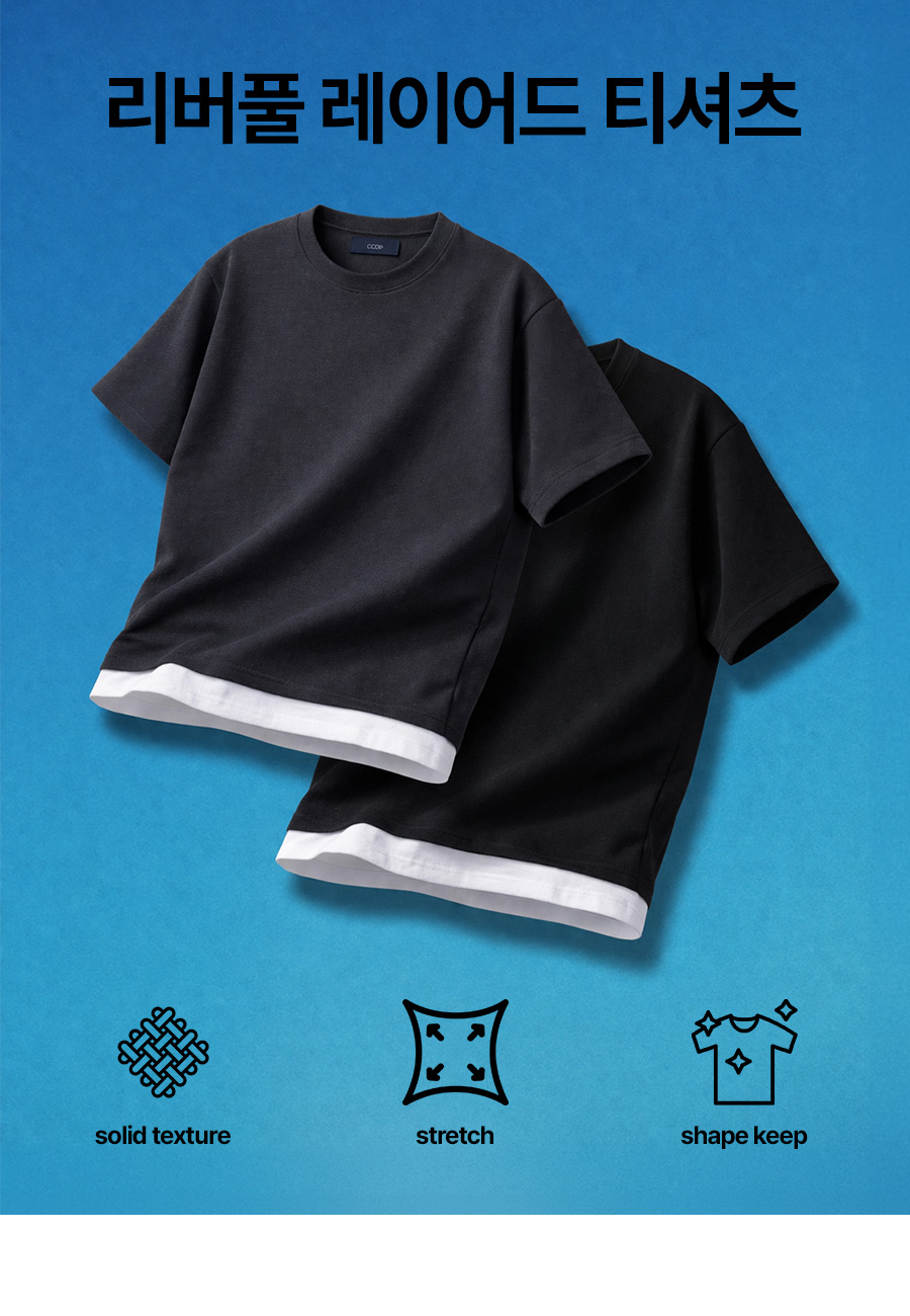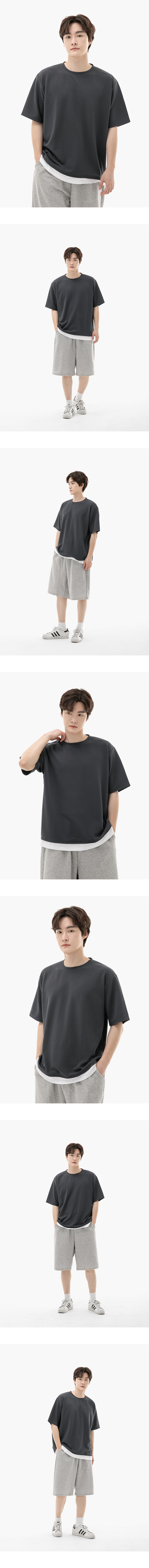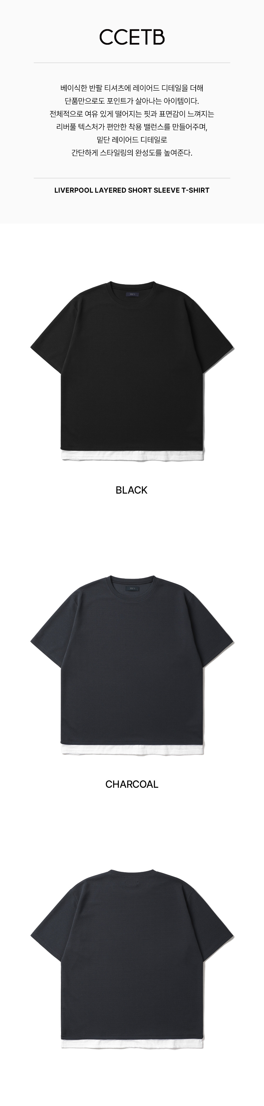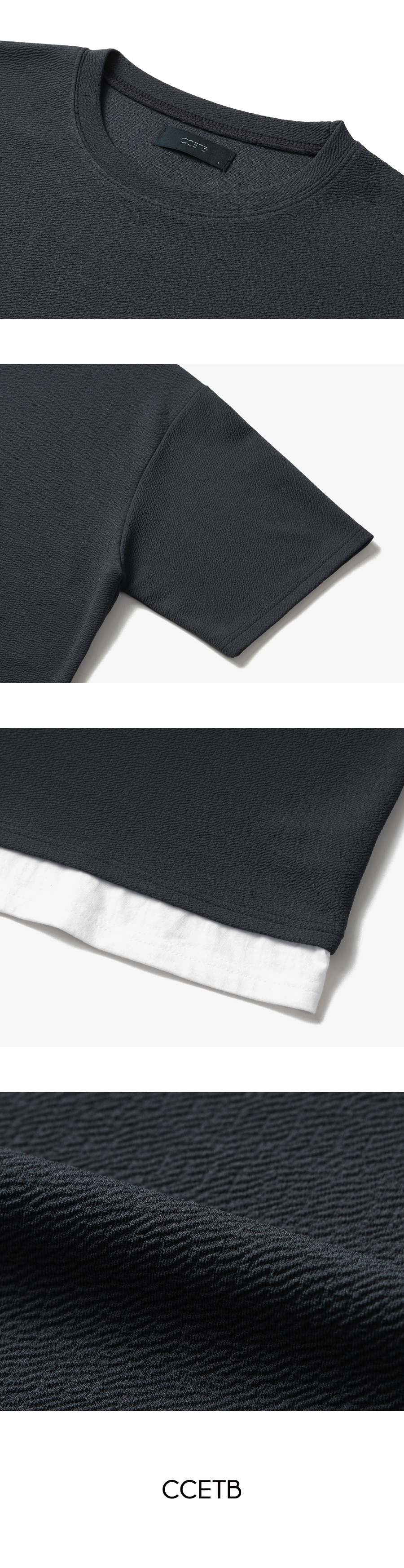 ⦁ 디자인 : 밑단 레이어드 디테일을 더한 반팔 티셔츠